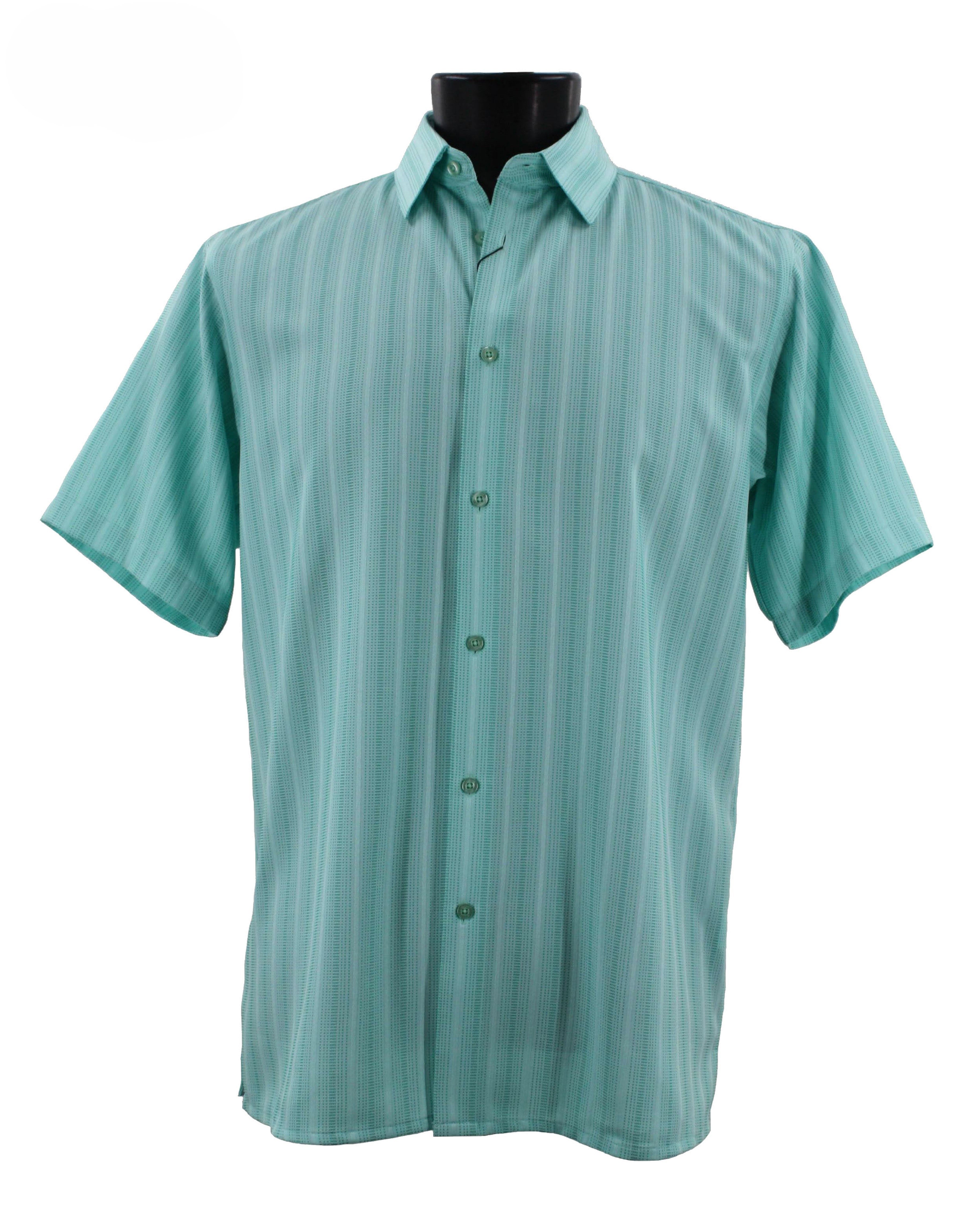 Regent's Line Seafoam Green Vertical Stripe Microfiber Short Sleeve Shirt – Full Cut