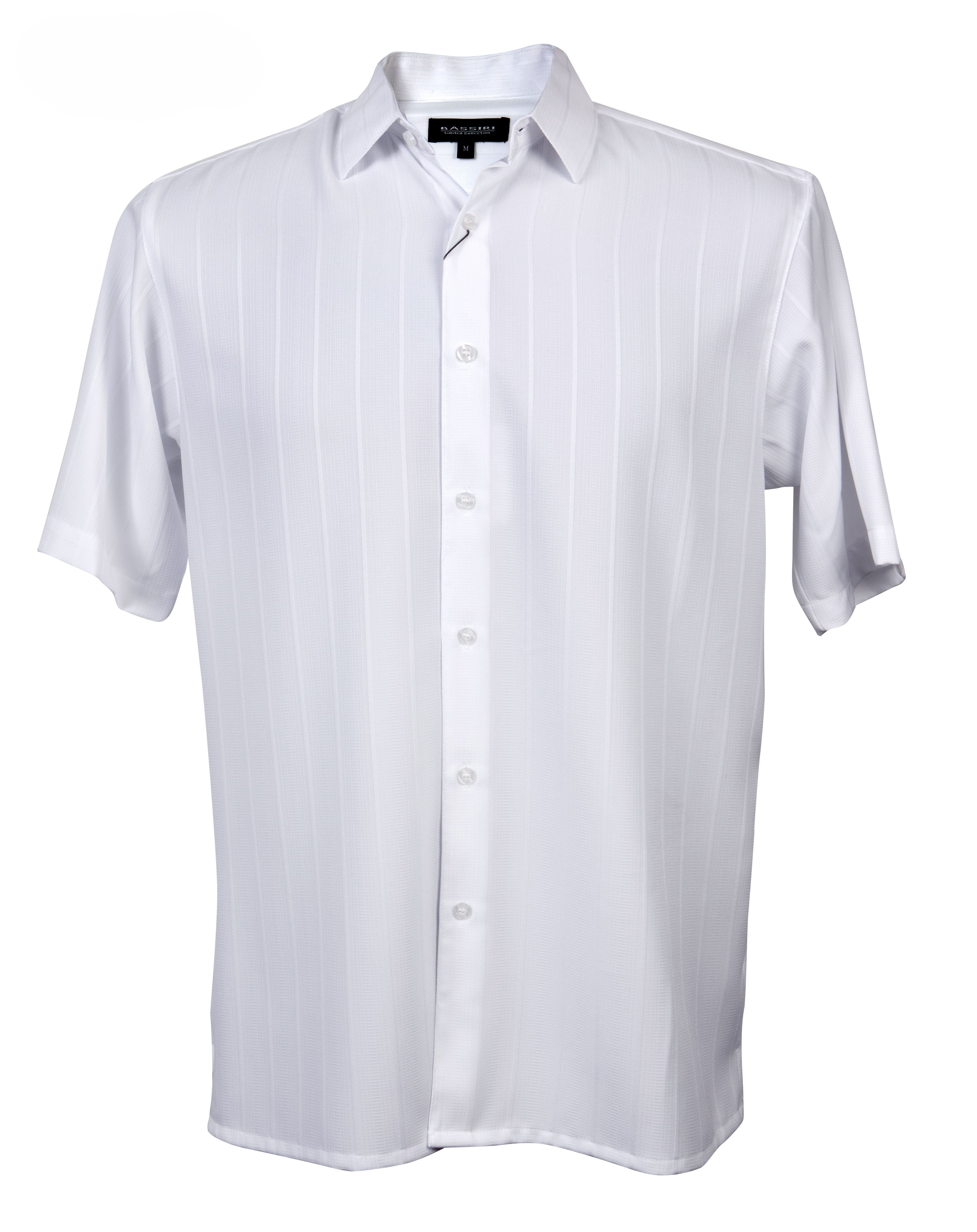 Regent's Line White Vertical Stripe Microfiber Short Sleeve Shirt – Full Cut