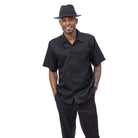 Montique’s Reione Collection is a masterclass in understated elegance. This black walking suit features a short-sleeve button-down shirt with a subtle textured pattern that adds depth and sophistication without overpowering the look. Paired with matching solid black pants, this two-piece set offers a clean and versatile design that’s perfect for evening outings, casual events, or whenever you want to exude timeless style. The adjustable waistband ensures all-day comfort, combining practicality with polished aesthetics.