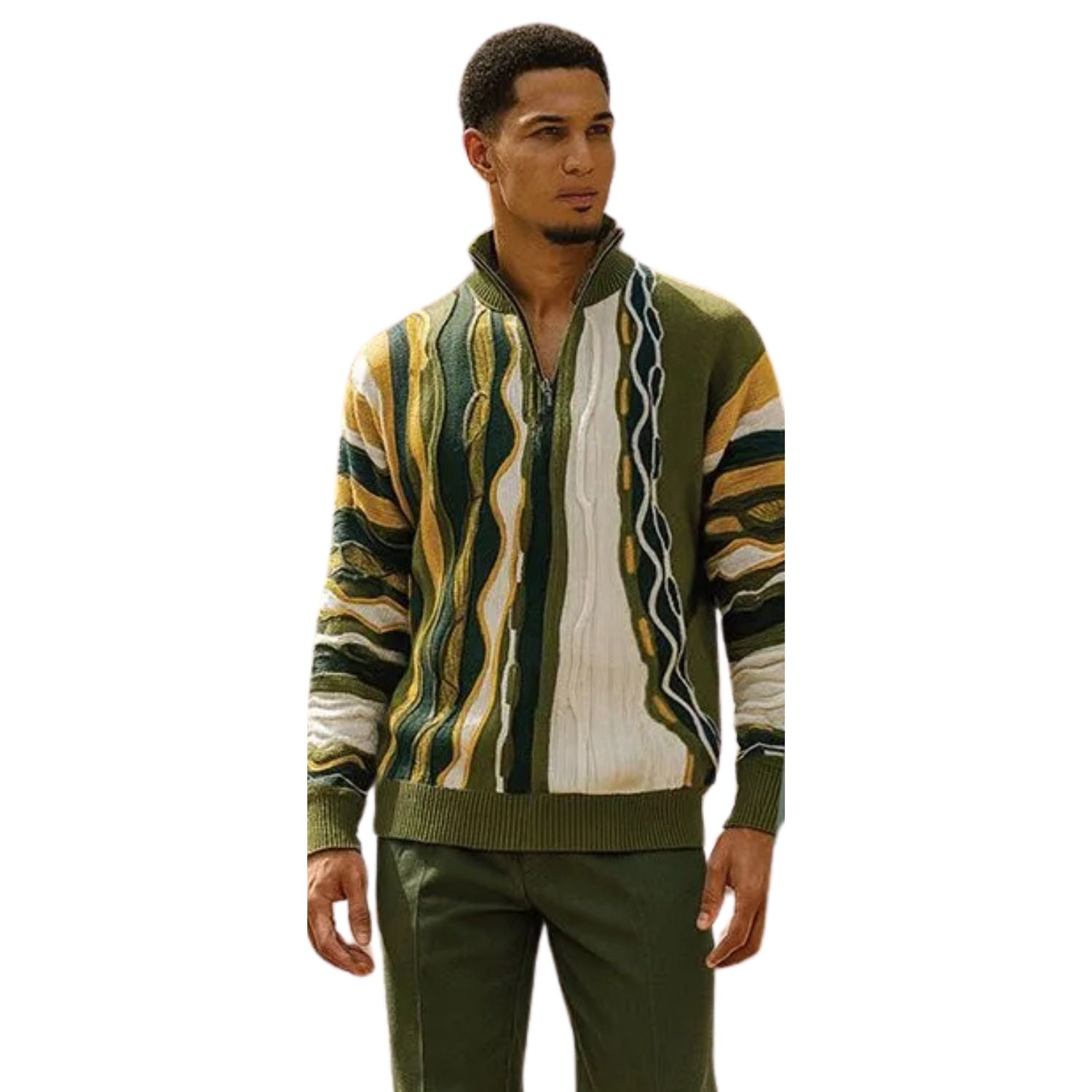 Renzo Collection: Stacy Adams Quarter Zip Pullover Sweater in Olive