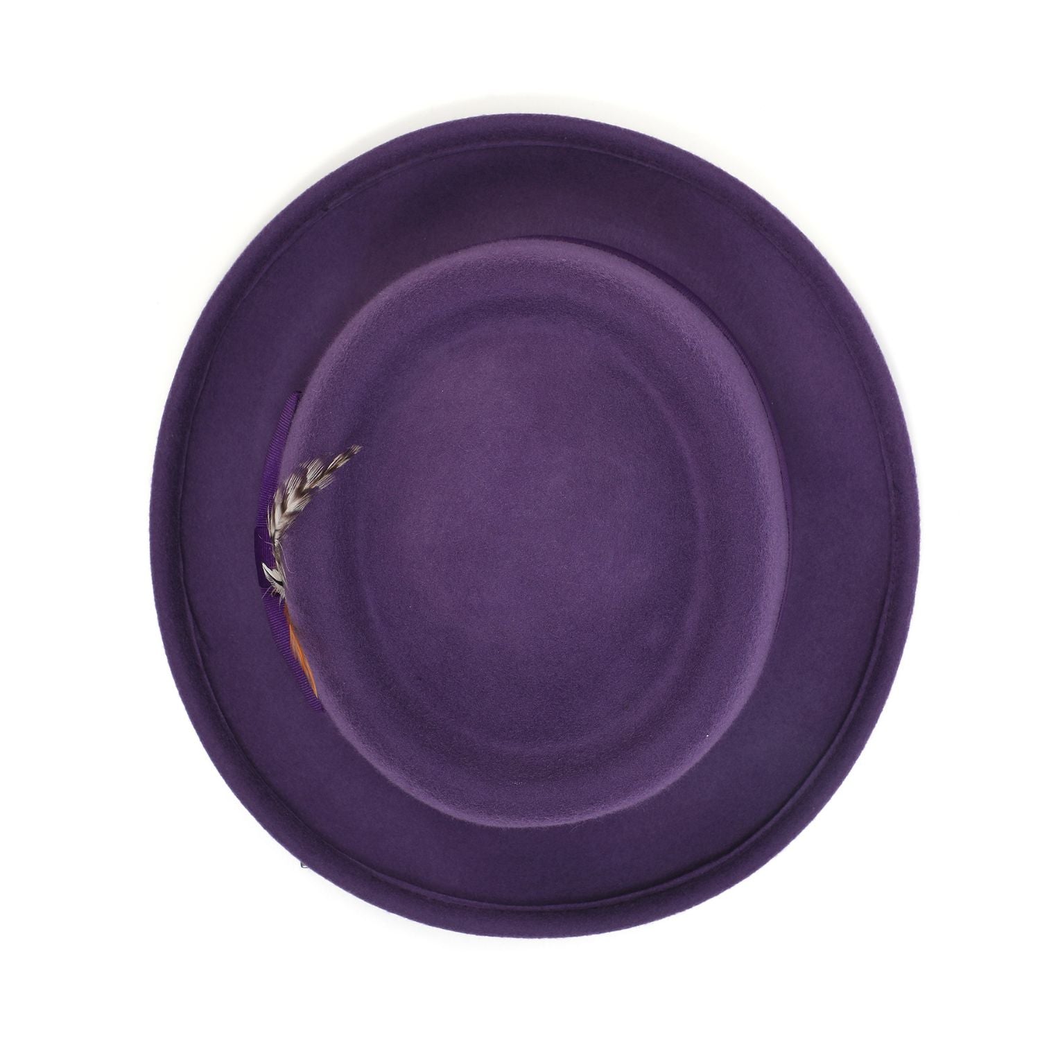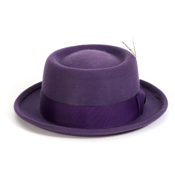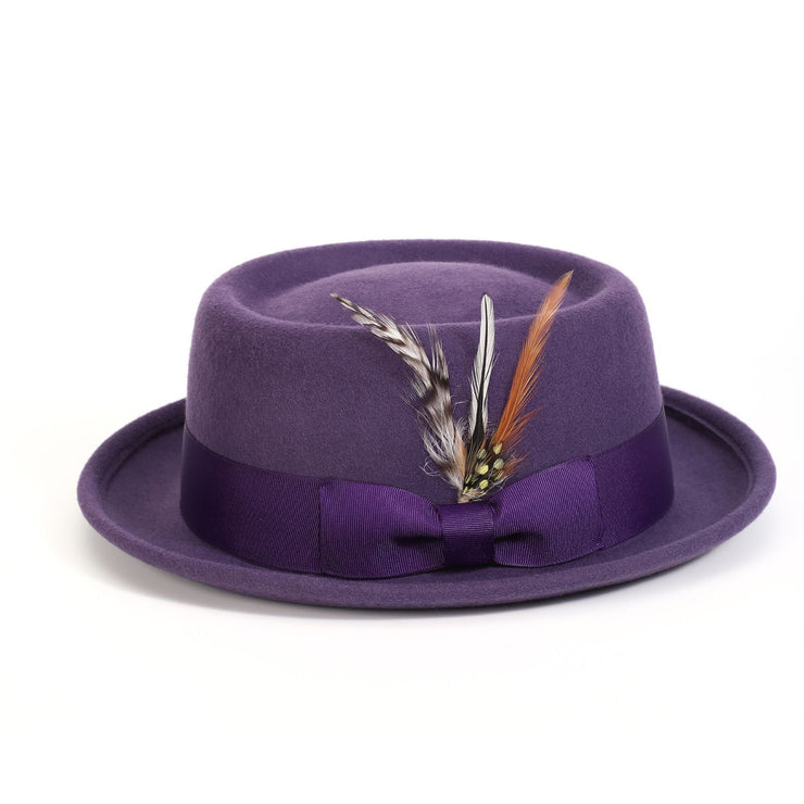 Ring Collection: Grape Pork Pie Fedora with Feather Accents