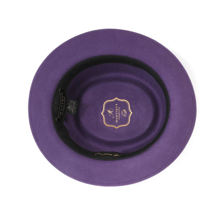 - Band: Complemented by a sleek Grape band that encircles the base of the crown, enhancing the hat's elegant profile.