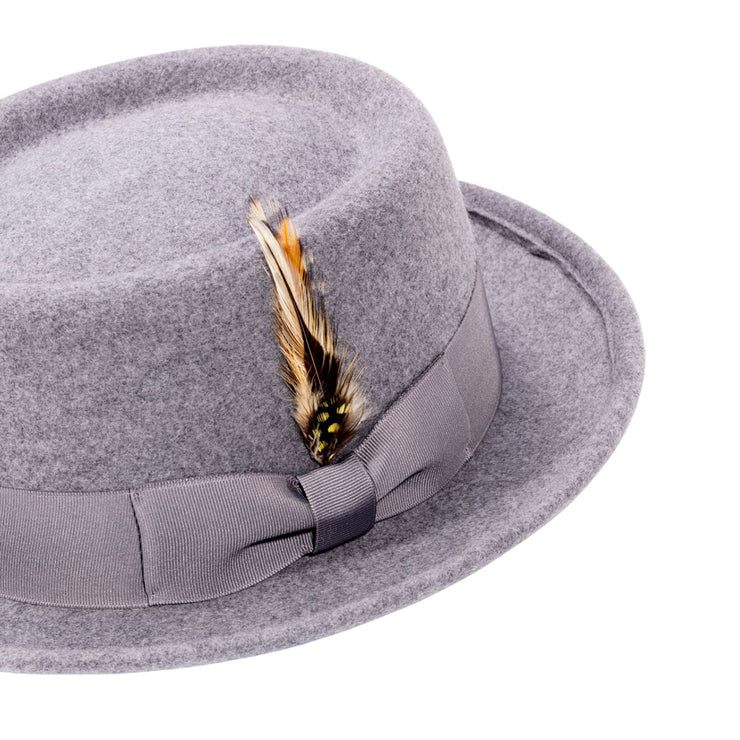 Ring Collection: Grey Pork Pie Fedora with Feather Accents