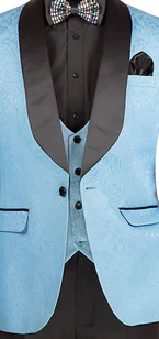 Riverra Collection: Light Blue 3 Piece Jacquard Pattern Single Breasted Slim Fit Tuxedo