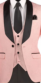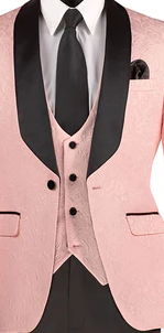 Riverra Collection: Pink 3 Piece Jacquard Pattern Single Breasted Slim Fit Tuxedo