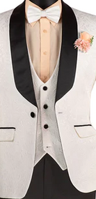 Riverra Collection: White 3 Piece Jacquard Pattern Single Breasted Slim Fit Tuxedo