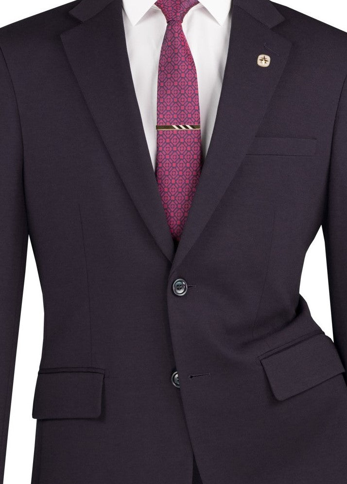 The Roche Collection’s charcoal 2-piece solid slim fit suit is a timeless and professional choice. Designed with wrinkle-resistant super stretch fabric, it delivers both comfort and sophistication. The single-breasted jacket features a 2-button closure and side vents for breathability, while the flat front pants have an adjustable waistband for a perfect fit. A go-to suit for business settings or formal occasions.