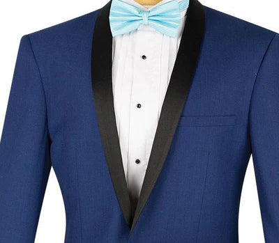 Rowling Collection: Blue 2 Piece with Black Lapel Single Breasted Slim Fit Tuxedo