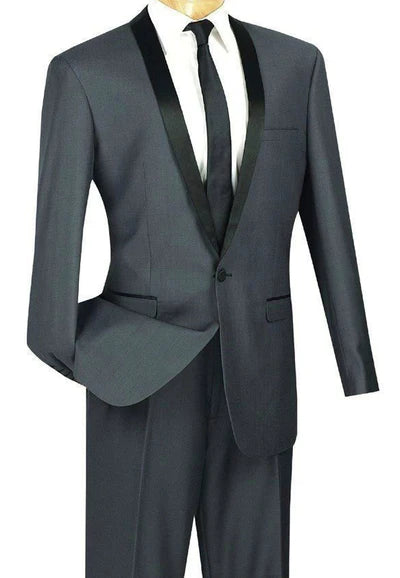 Rowling Collection: Slim Fit Tuxedo with Narrow Shawl Collar In Heather Grey