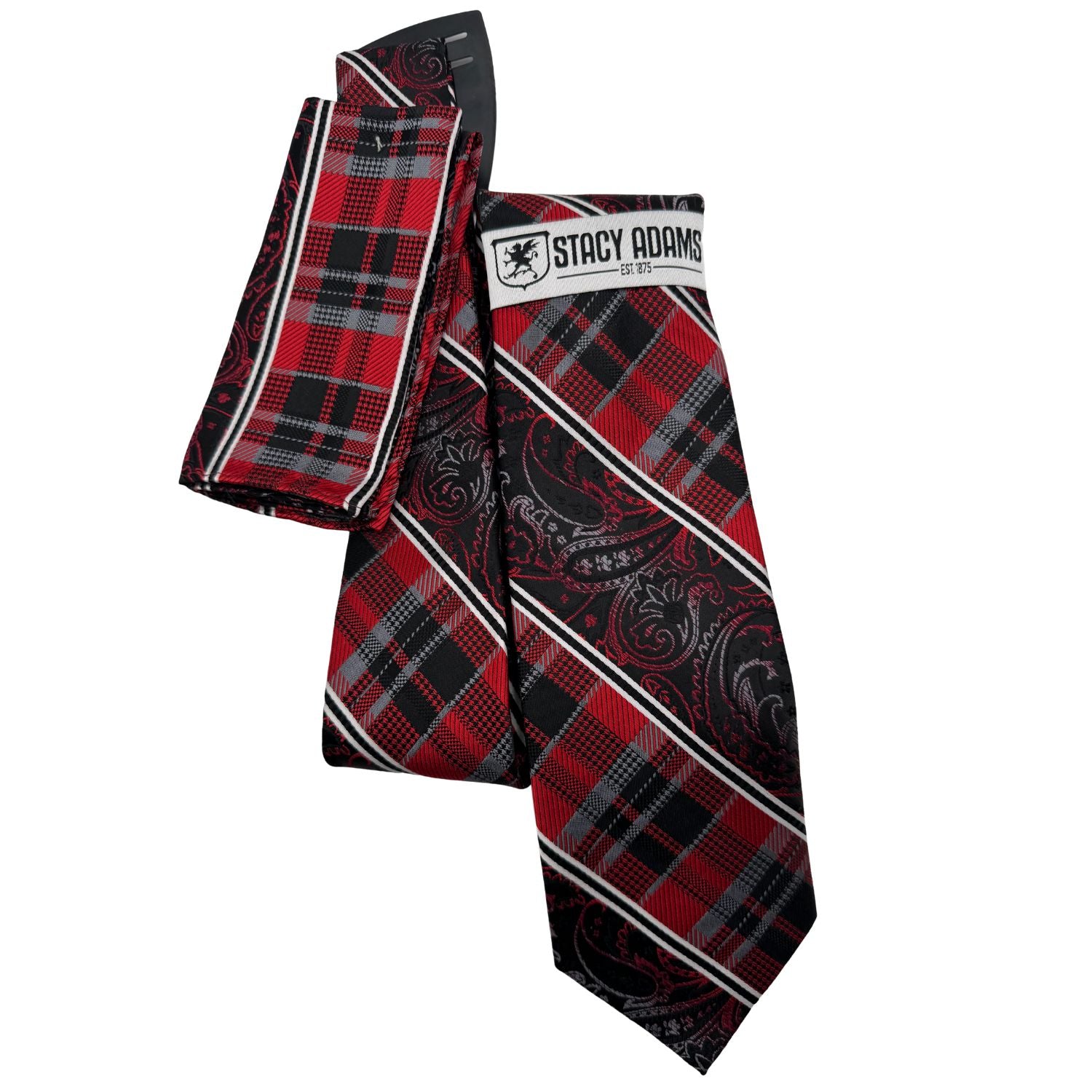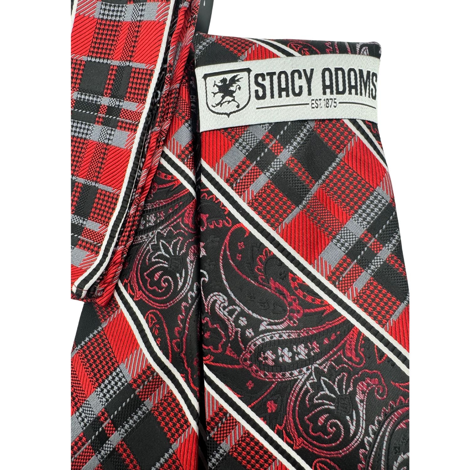 Redefine your formal standards with the Rubric Collection. This Stacy Adams duo is a masterclass in pattern play, featuring a sharp crimson red and charcoal black palette. By slicing traditional plaid with ornate paisley panels, this set creates a visual rhythm that is both disciplined and daring-perfect for the man who sets his own rules.