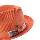 The Betelgeuse Collection brings a bold yet refined aesthetic, perfect for the man who appreciates standout details with a classic touch. This Salmon-colored fedora is woven with a distinct wave pattern, creating a textured look that adds depth and movement to its design. A sleek grosgrain band wraps the base, complemented by a two-tone fabric bow that introduces an extra element of style. The Montique signature crest pin sits at the center, giving it that finishing touch of sophistication. Whether dressing up or keeping it cool and casual, this hat is a sharp statement piece for any wardrobe.