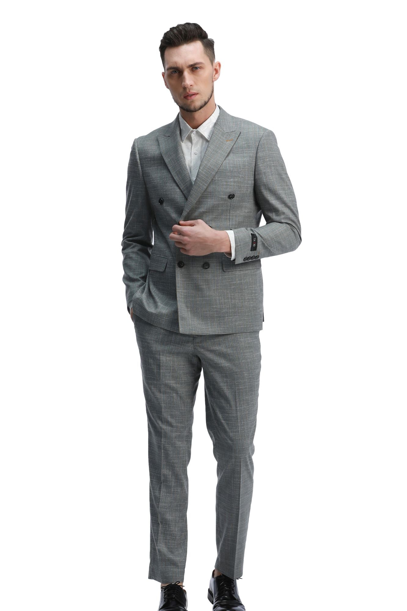 Jacket: The double-breasted jacket features a stylish peak lapel and two-button closure, complemented by pin-stripes that add depth and character. Side flap pockets provide practicality without sacrificing the sleek silhouette.