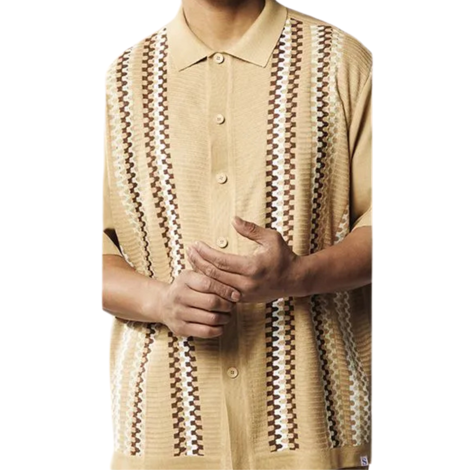 Sargas Collection: Men's Khaki 2-Piece Short Sleeve Set with Geometric Pattern