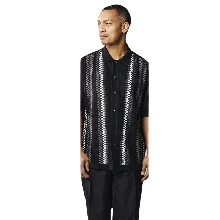 Sargas Collection: Men's Black 2-Piece Short Sleeve Set with Geometric Pattern