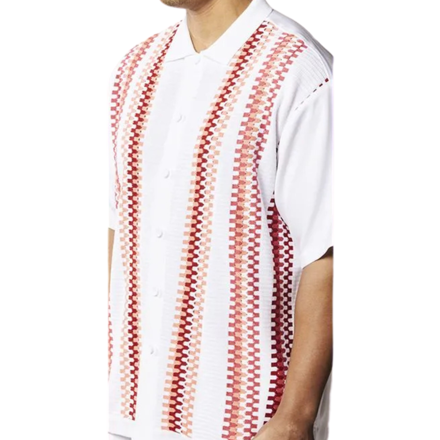 Sargas Collection: Men's White 2-Piece Short Sleeve Set with Geometric Pattern