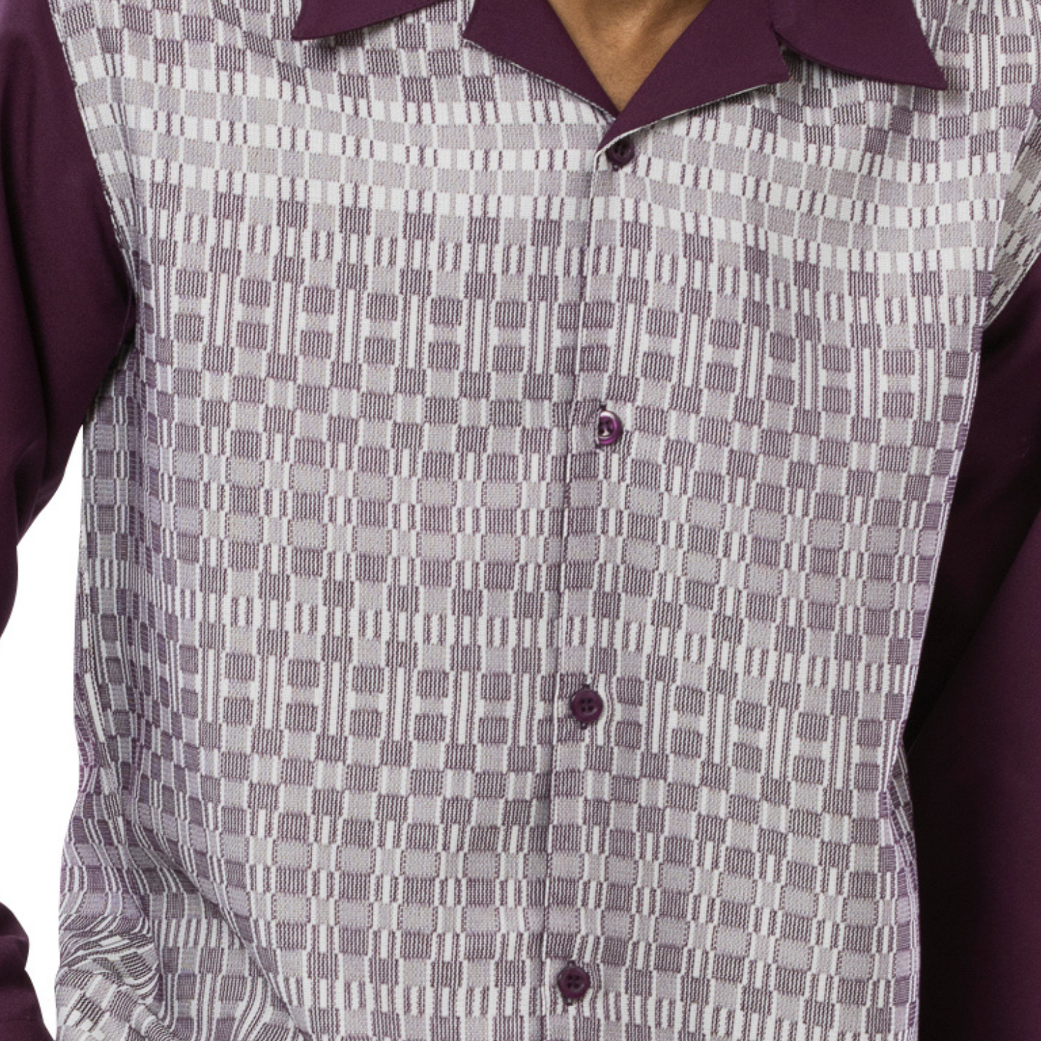 Serialized Collection: Montique Plum Printed 2 Piece Long Sleeve Walking Suit Set 2357