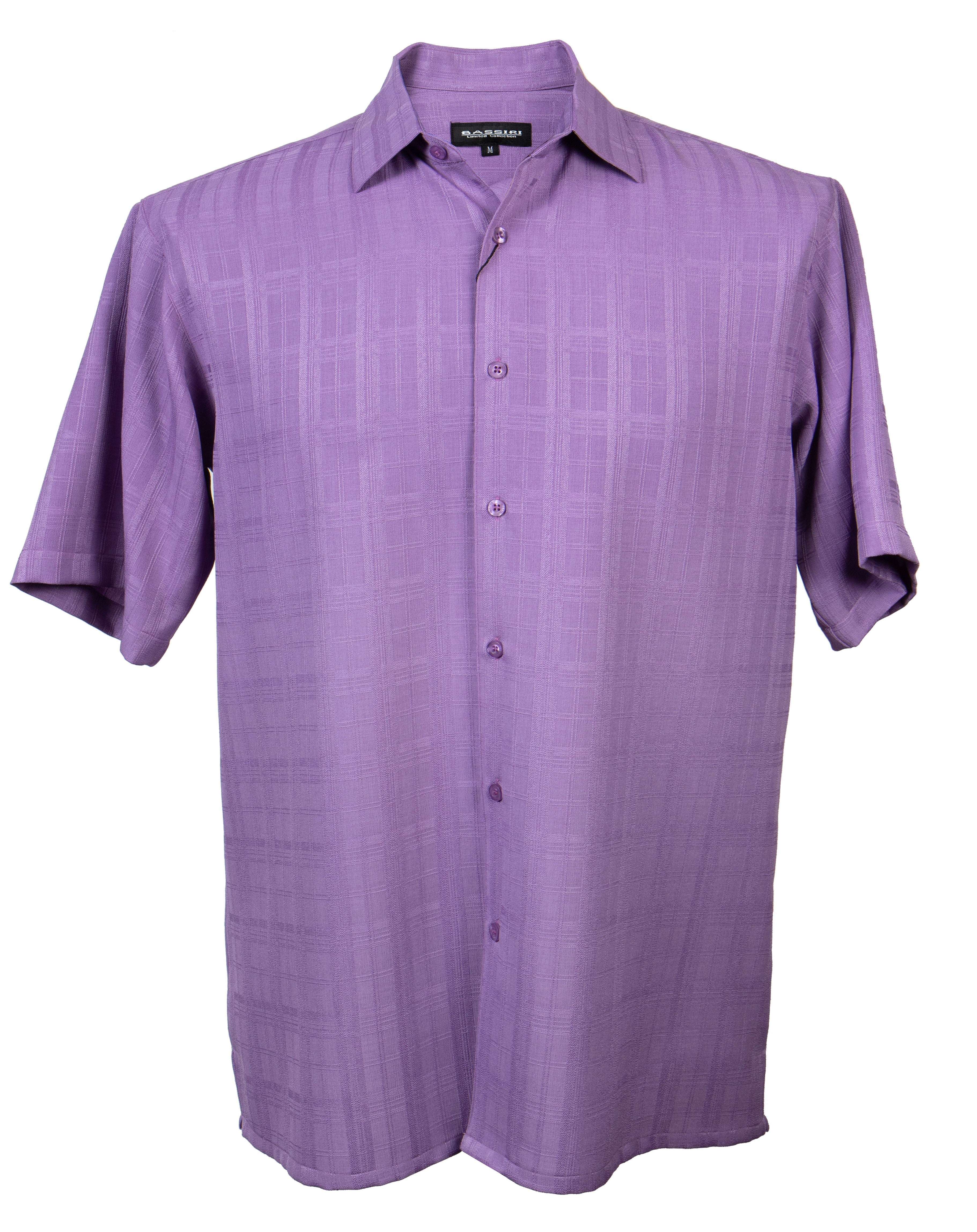ShadowGrid Collection Lavender Plaid Texture Microfiber Short Sleeve Shirt – Full Cut