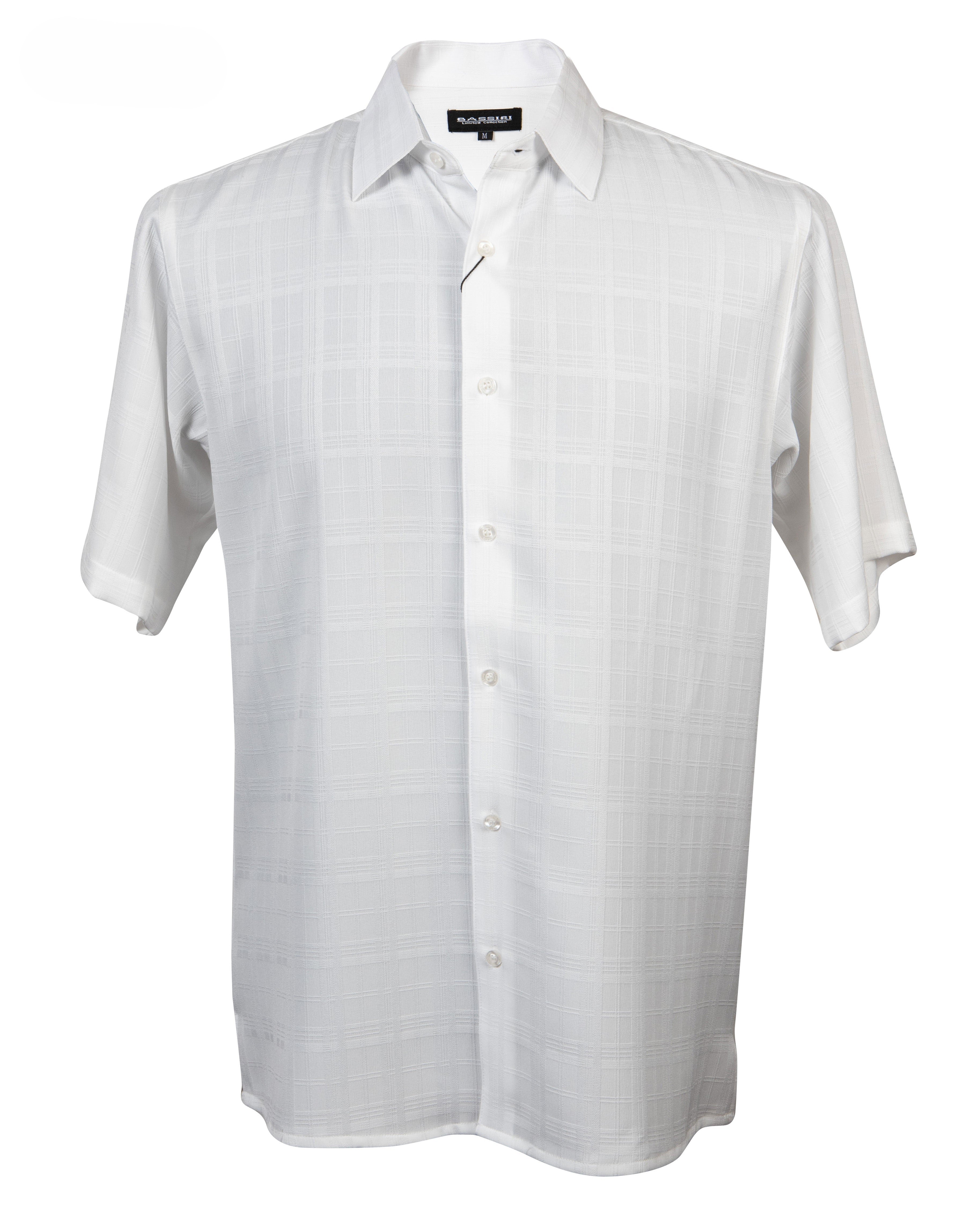 ShadowGrid Collection White Plaid Texture Microfiber Short Sleeve Shirt – Full Cut