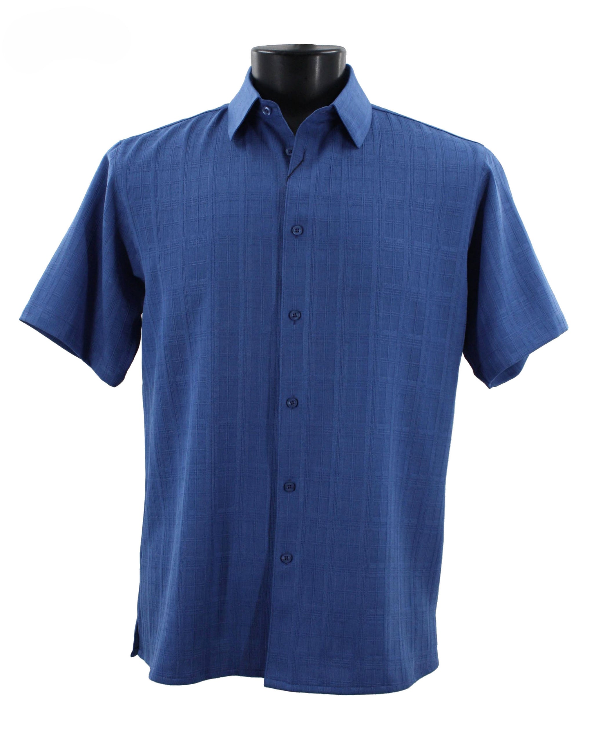 ShadowGrid Collection Mid Royal Plaid Texture Microfiber Short Sleeve Shirt – Full Cut