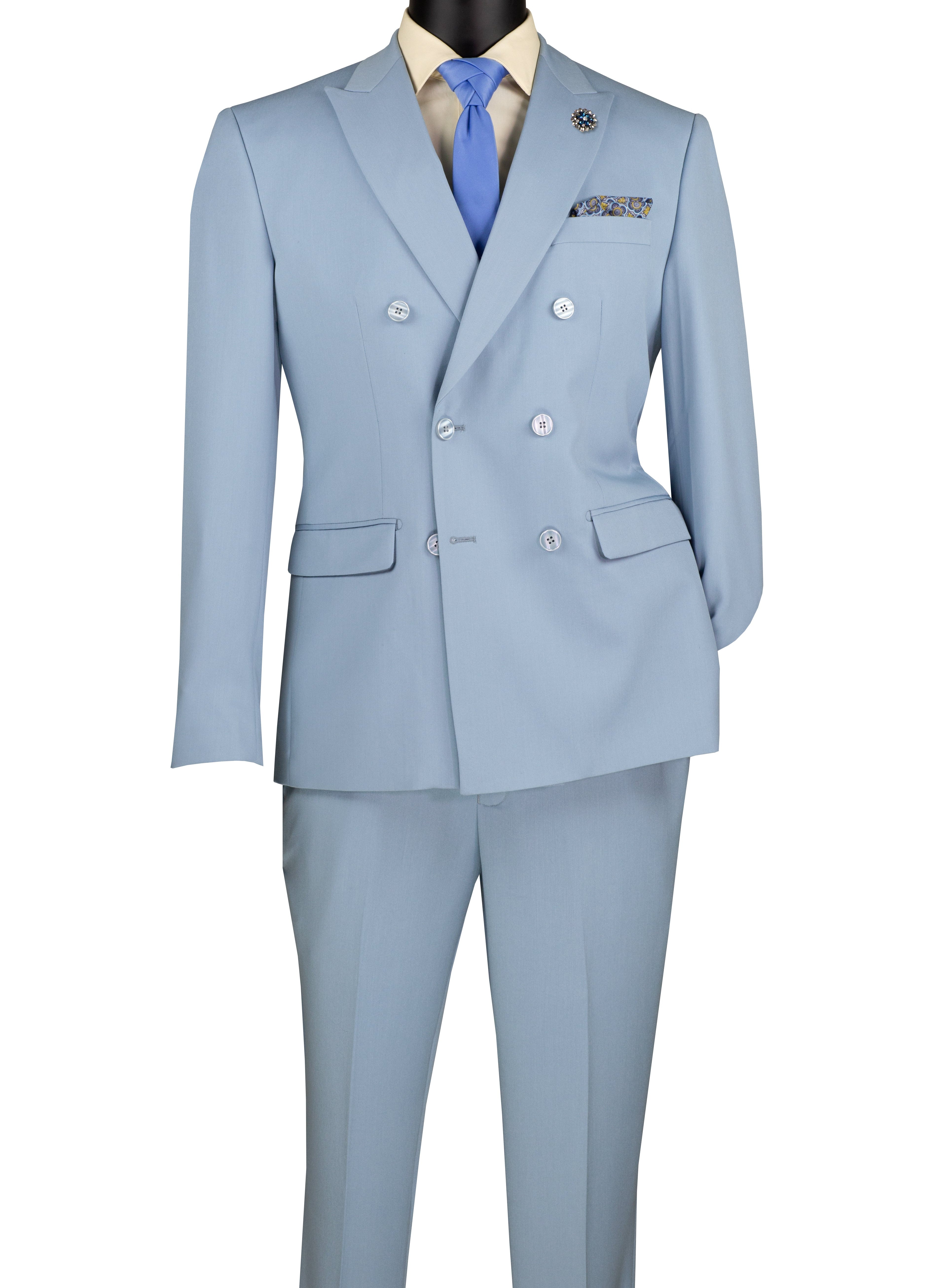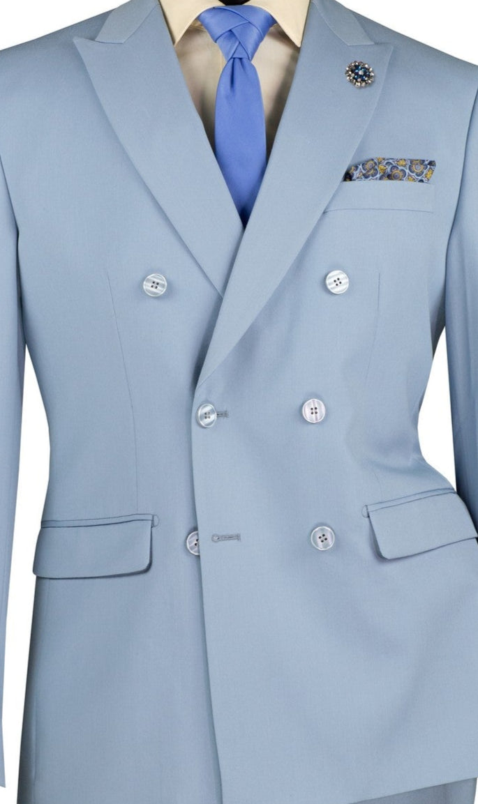 Shapley Collection: Ice Blue 2-Piece Slim Fit Double Breasted Suit in Luxurious Stretch Fabric
