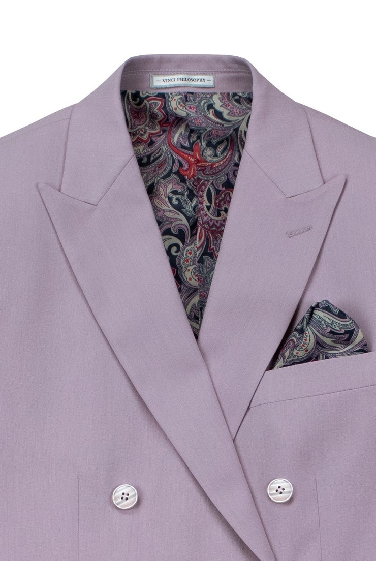 Shapley Collection: Lilac 2-Piece Slim Fit Double Breasted Suit in Luxurious Stretch Fabric