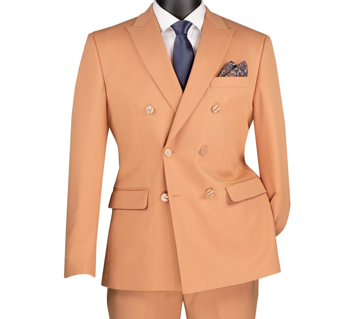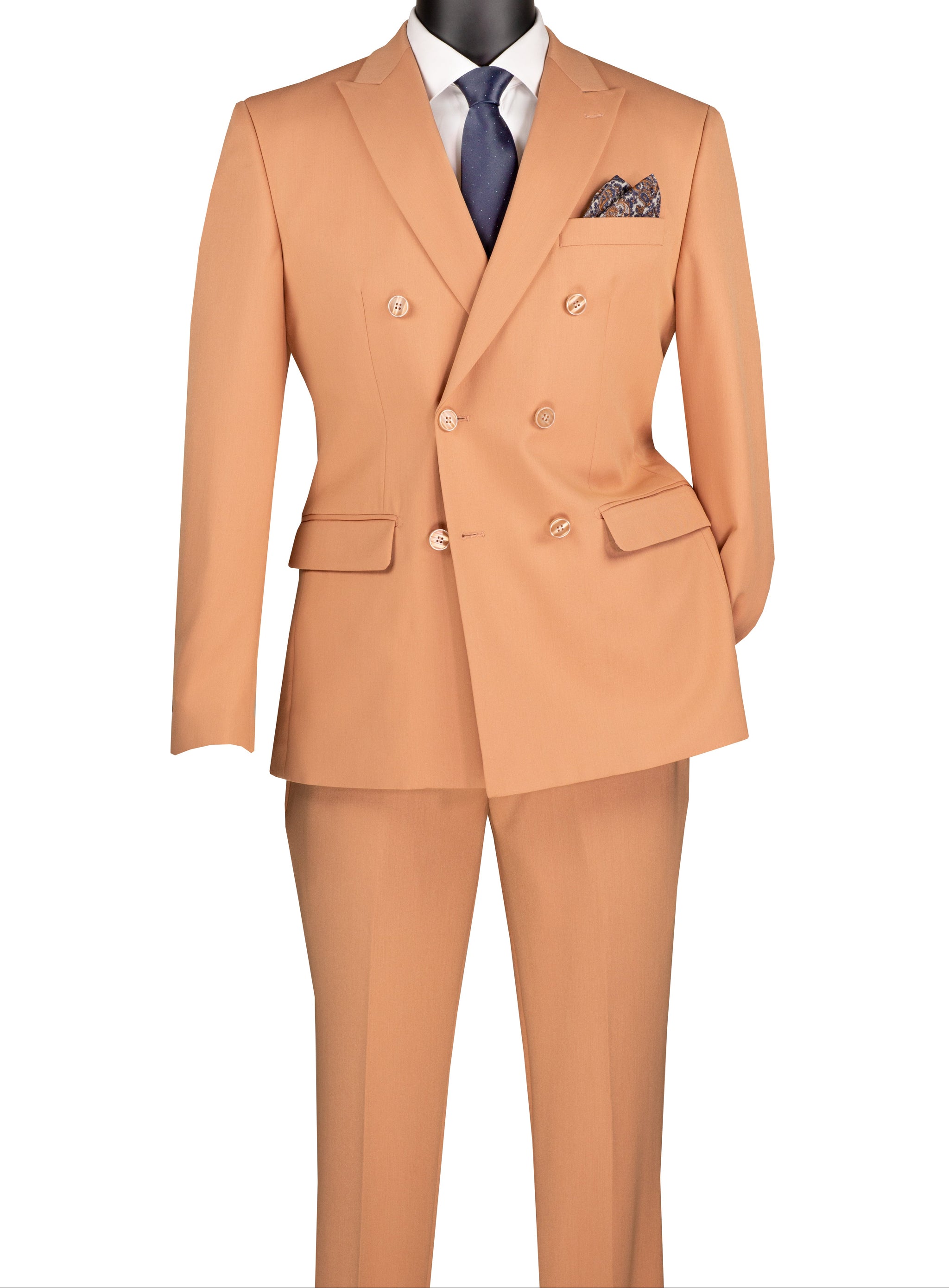 Shapley Collection: Peach 2-Piece Slim Fit Double Breasted Suit in Luxurious Stretch Fabric