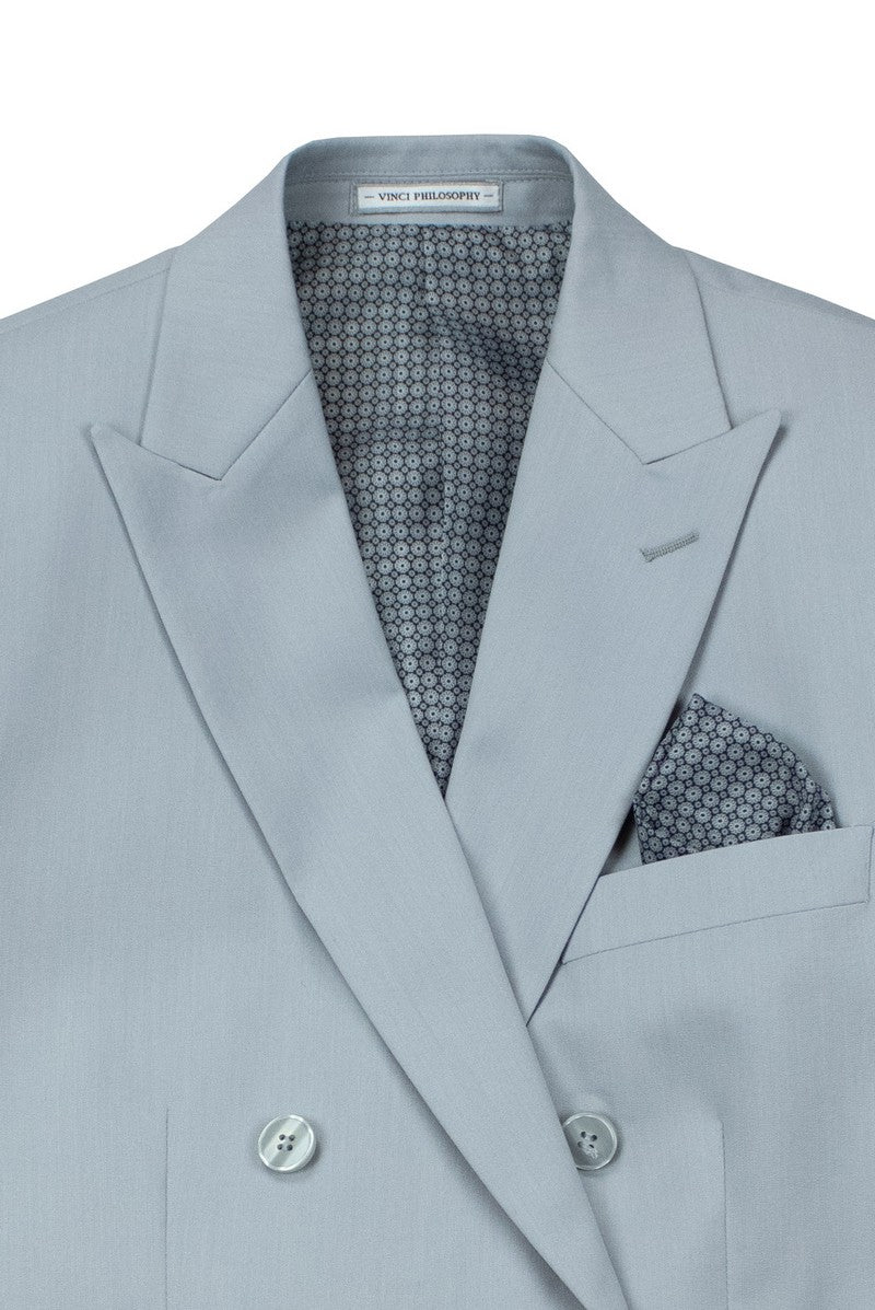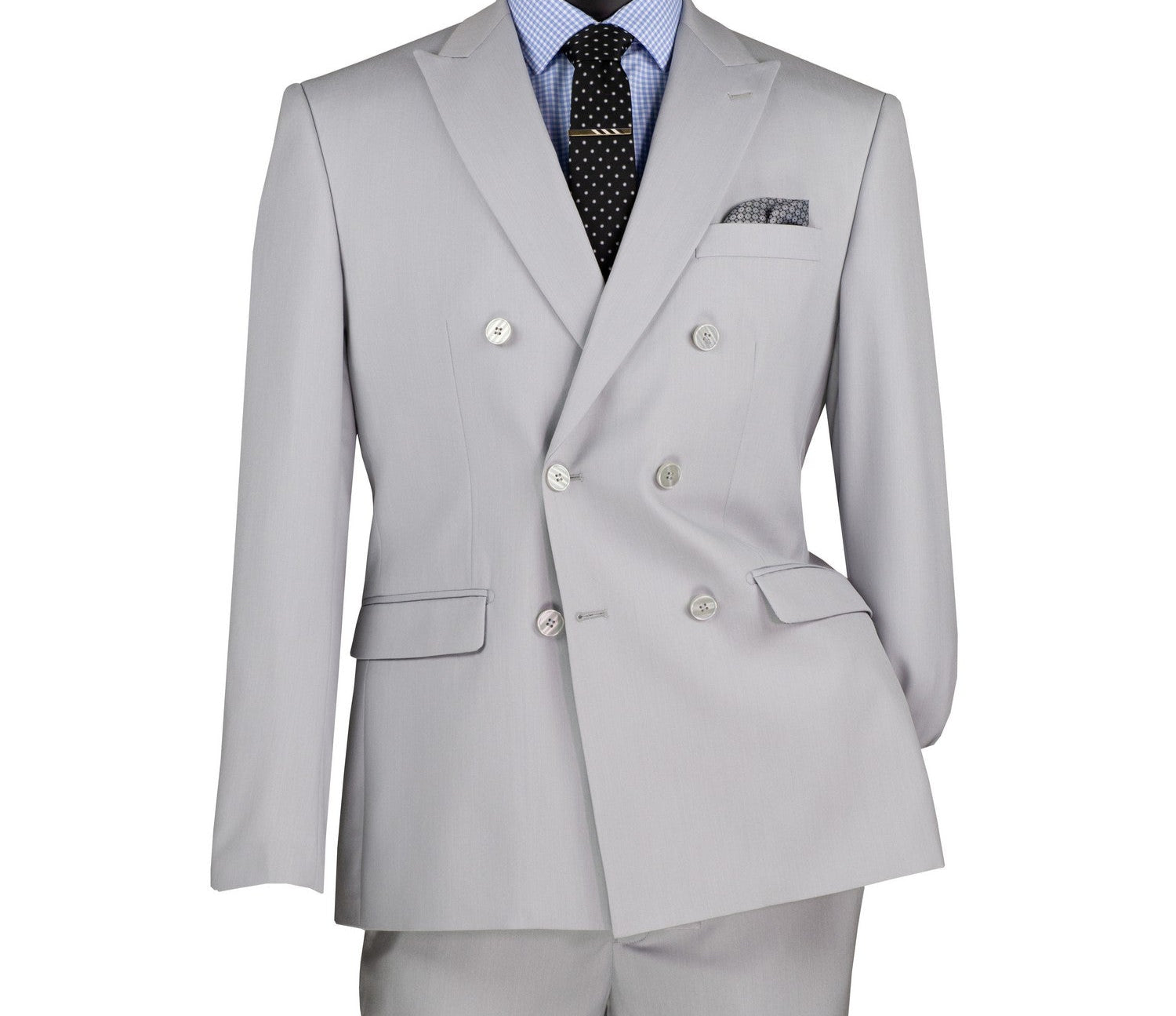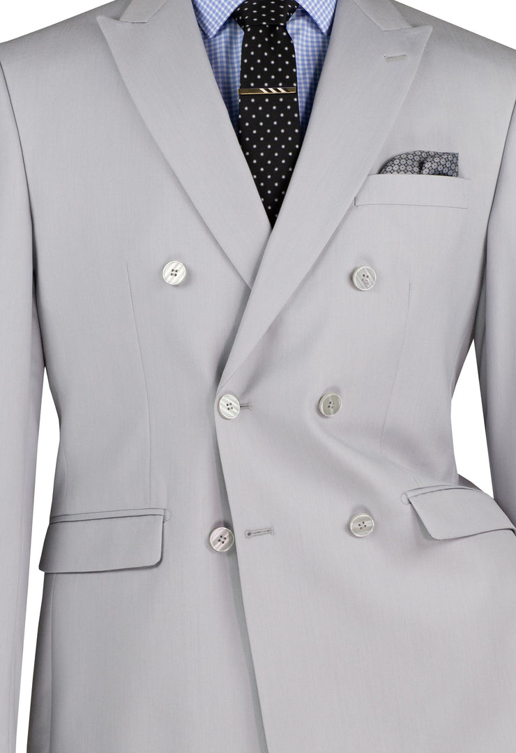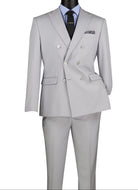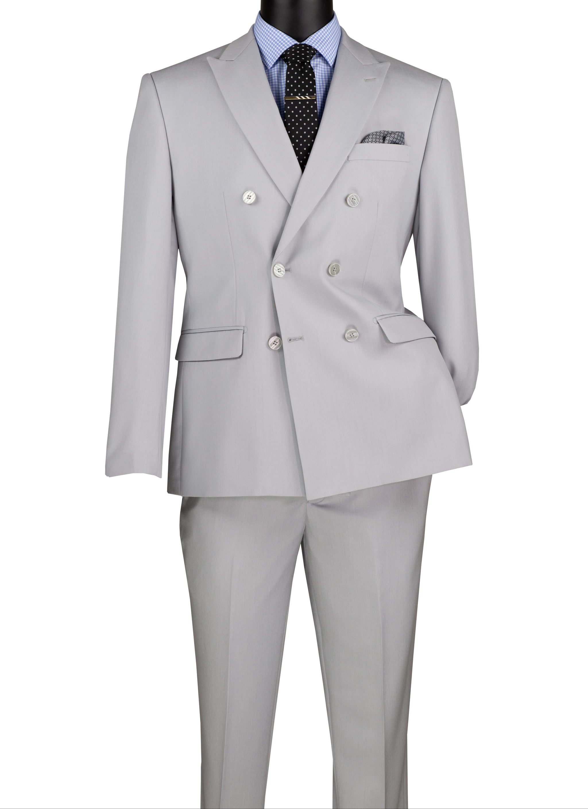 Shapley Collection: Silver 2-Piece Slim Fit Double Breasted Suit in Luxurious Stretch Fabric