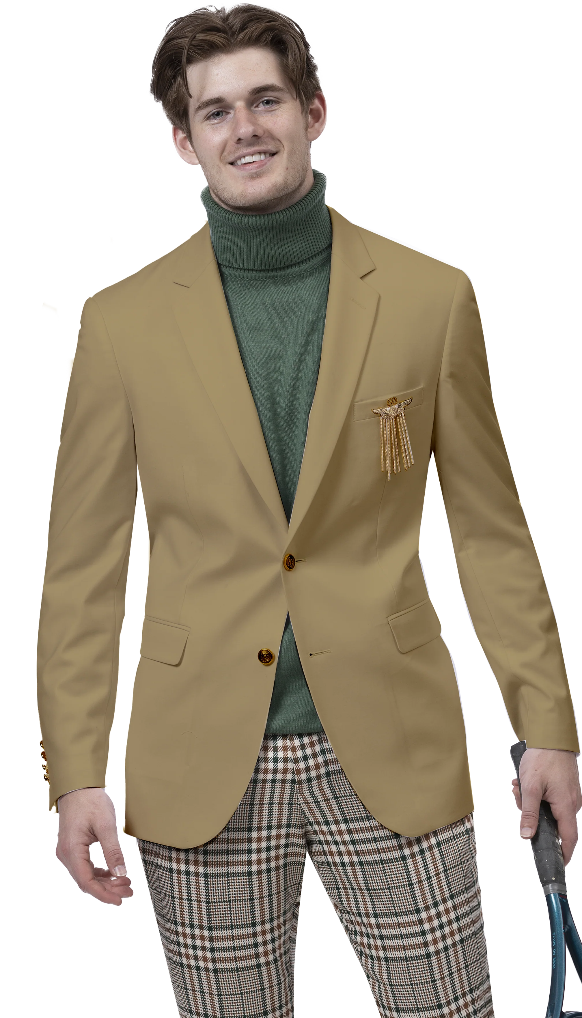 Elevate your wardrobe with our Tan Single Breasted Blazer J170. This blazer boasts a modern fit and is crafted from a refined poly-rayon blend, making it both comfortable and durable. The notch lapel and side flap pockets add a touch of sophistication, while the two-button closure provides a classic and timeless look. Please note that pants and shirt are not included. It runs small, so we recommend going up one size for the perfect fit.