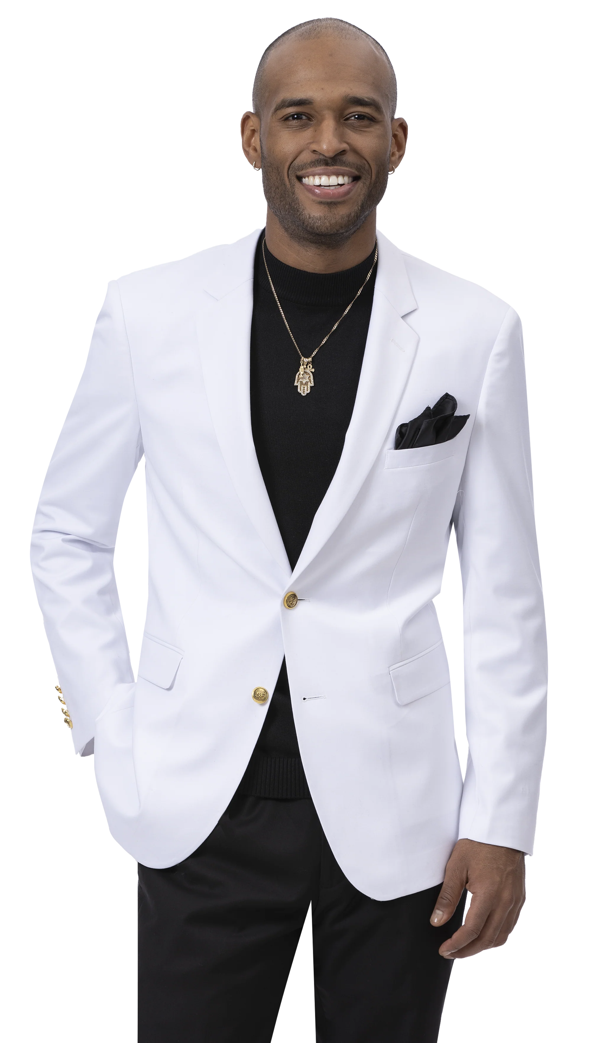 Achieve a clean and sophisticated look with our White Single Breasted Blazer J170. This blazer features a modern fit and is crafted from a refined poly-rayon blend, making it both comfortable and durable. The notch lapel and side flap pockets add a touch of sophistication, while the two-button closure provides a classic and timeless look. Please note that pants and shirt are not included. It runs small, so we recommend going up one size for the perfect fit.