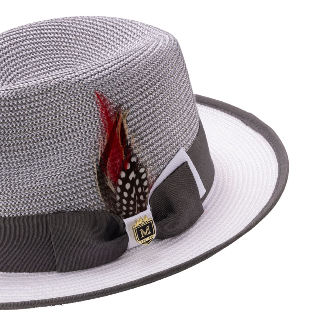 Shethys Collection: Montique Grey & White Center Crease Fedora Hat
