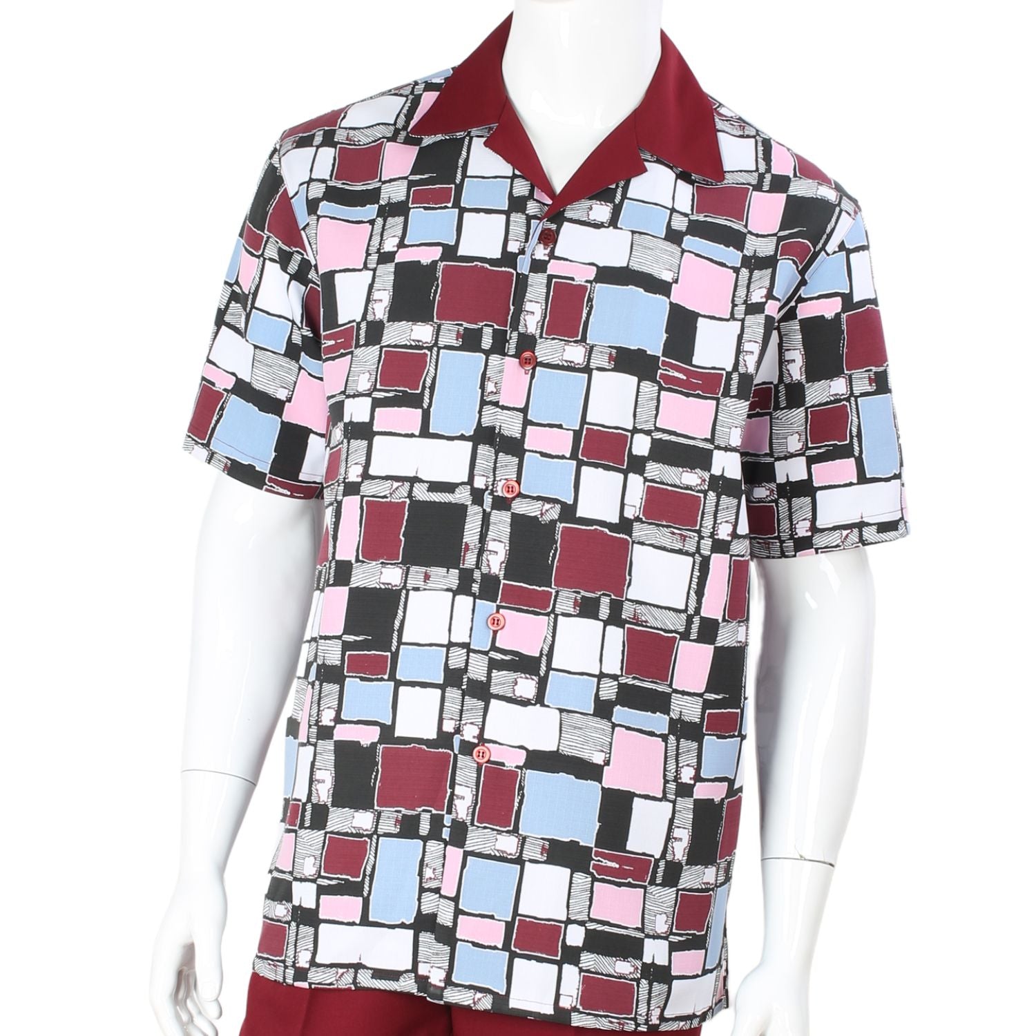 Sidian Collection: Geometric Mosaic Burgundy Multi-Color Short Sleeve Fashion Set