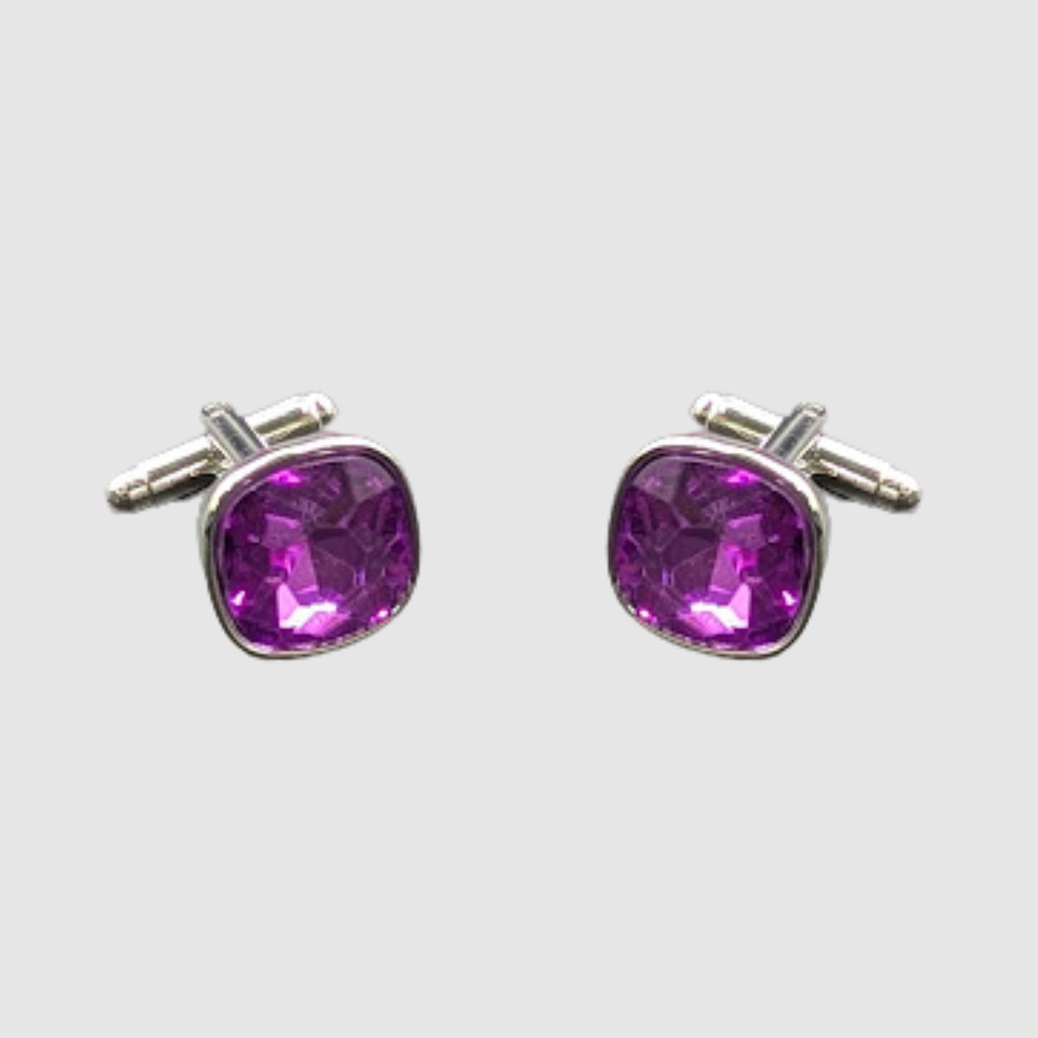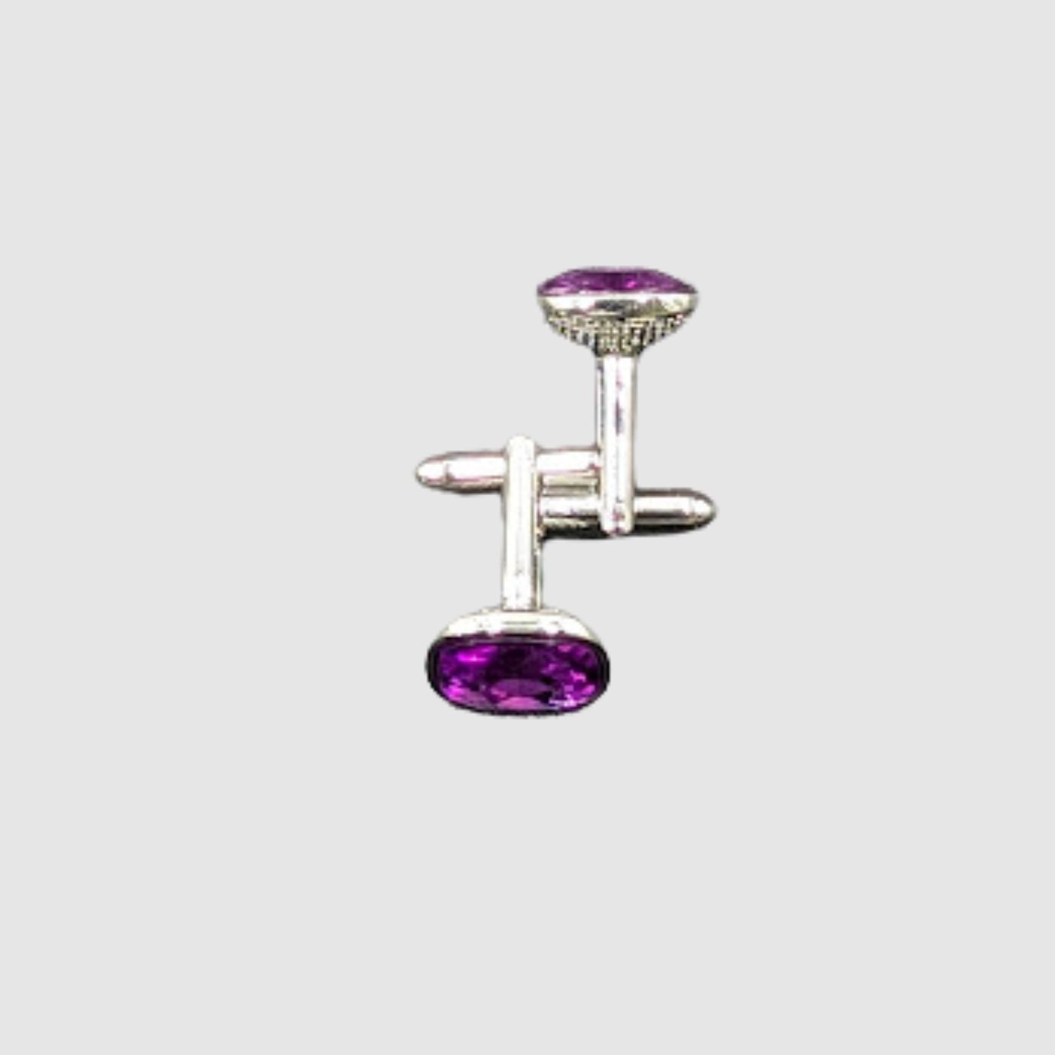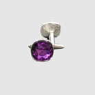 Unleash the power of color with Suits & More's Amethyst Radiance Cufflinks. These sophisticated cufflinks feature a bold, purple gemstone set in a sleek silver frame, offering a vibrant pop of color and an air of elegance to your formal attire. Perfect for those who like to express their personality and style through unique accessories, these cufflinks are designed to impress at any event.