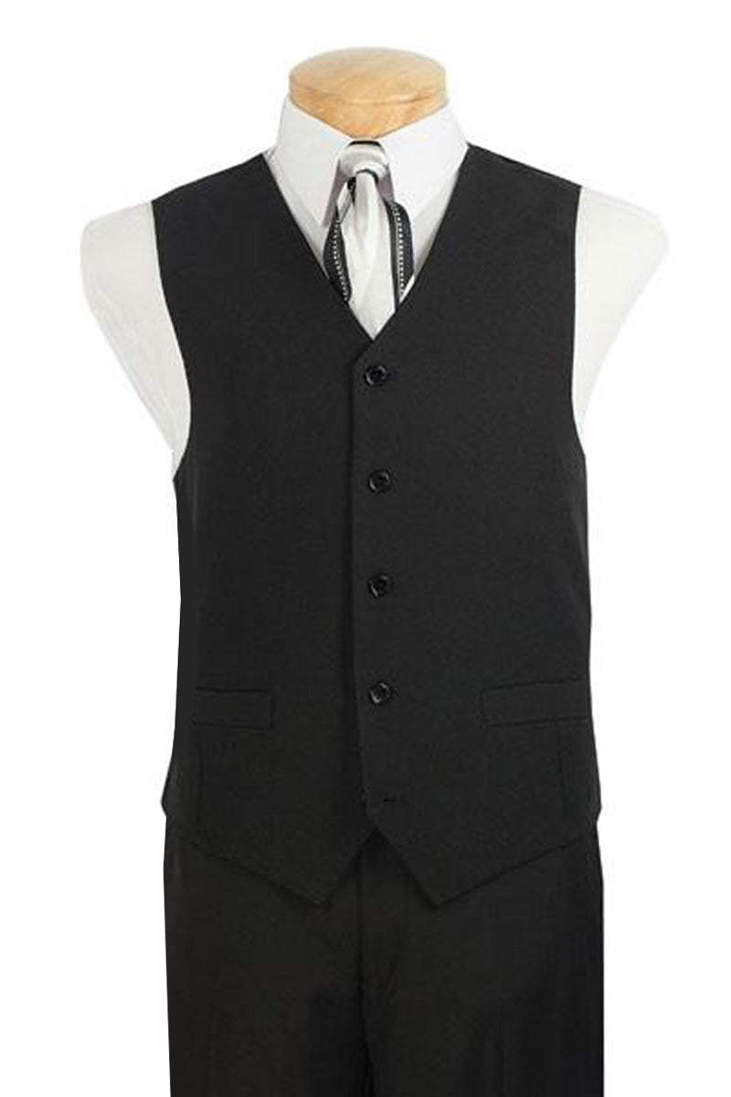 Single Breasted 5 Buttons Solid Color Vest- Black