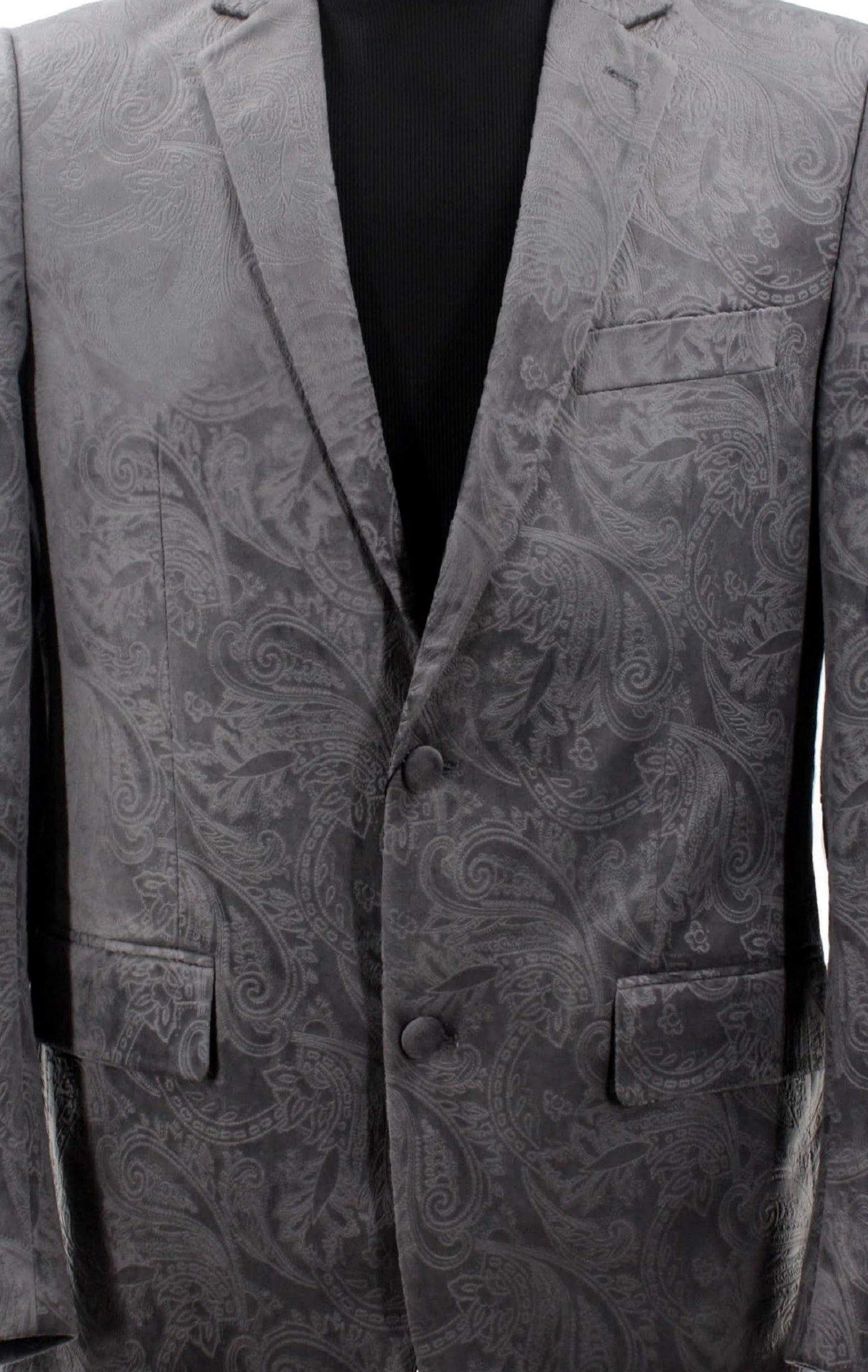 Sirius Collection: Grey Polyester Velvet Paisley Pattern Regular Fit Blazer