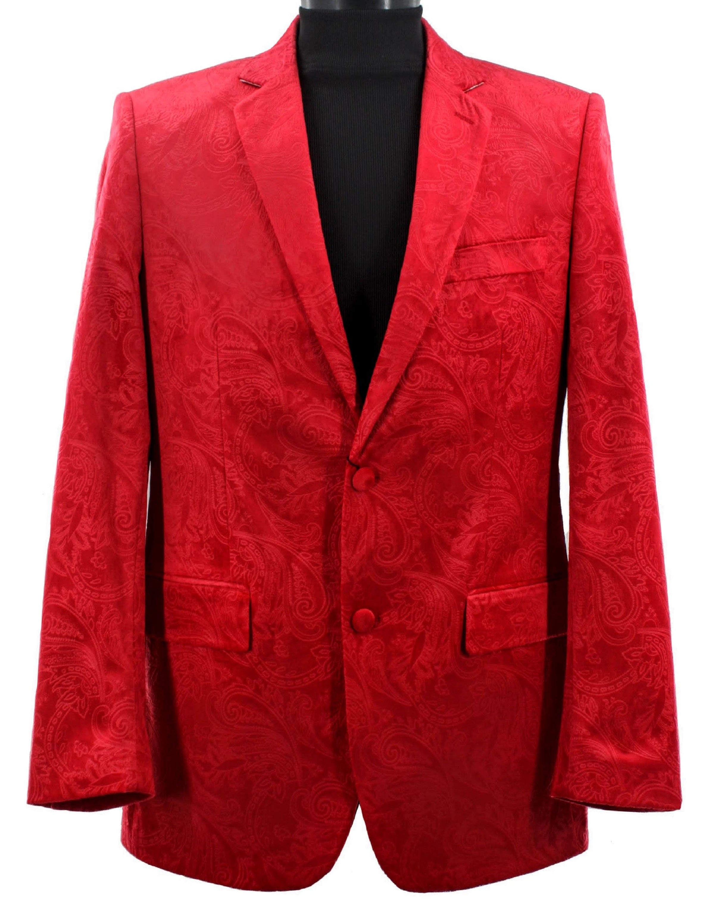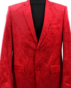Stand out in bold sophistication with the Sirius Collection Red Polyester Velvet Paisley Pattern Blazer. Crafted from smooth polyester velvet with an intricate paisley pattern, this blazer brings a rich red tone ideal for making a statement at special events, formal dinners, and upscale occasions.