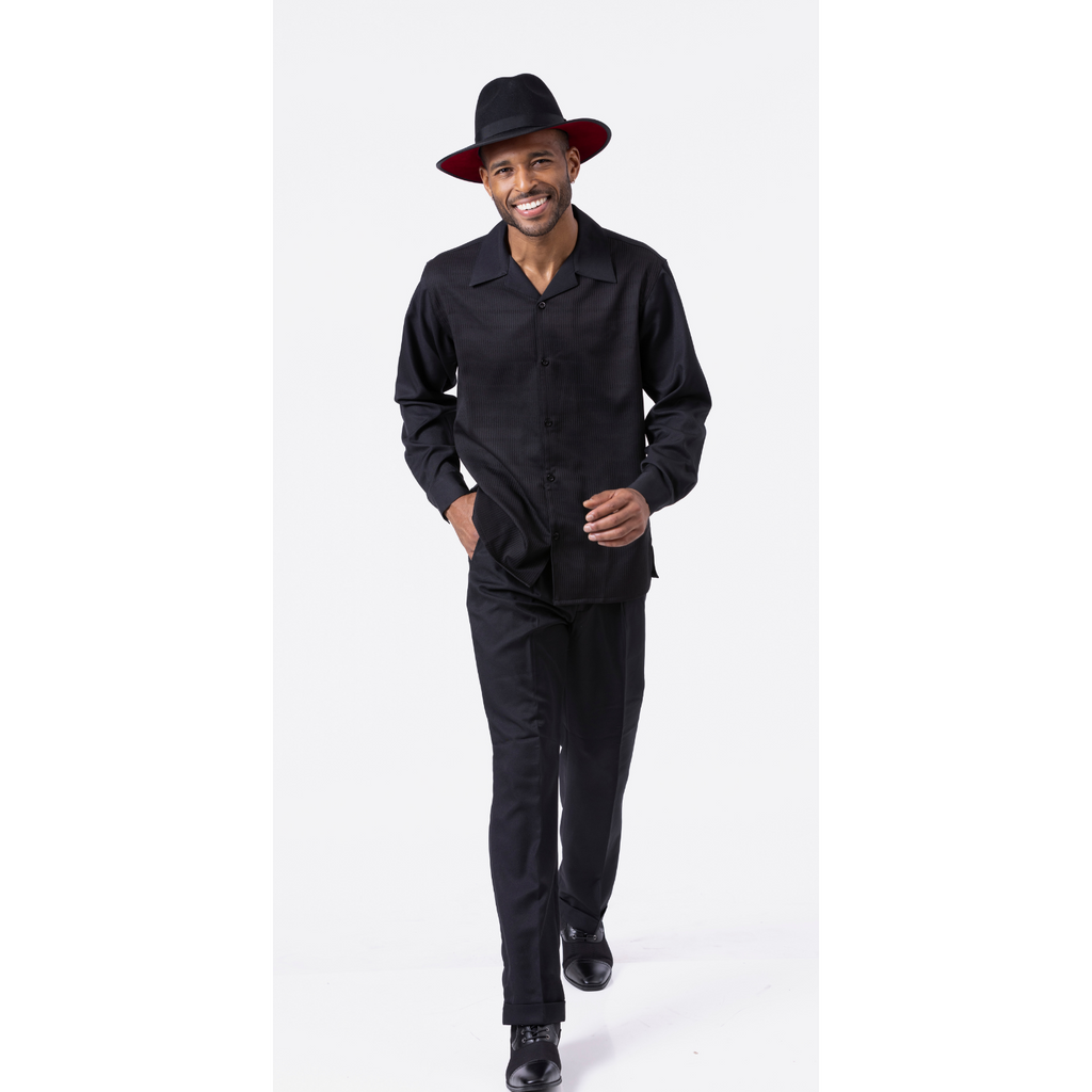 Montique Slate Black Tone On Tone 2 Piece Long Sleeve Walking Suit Set 2290