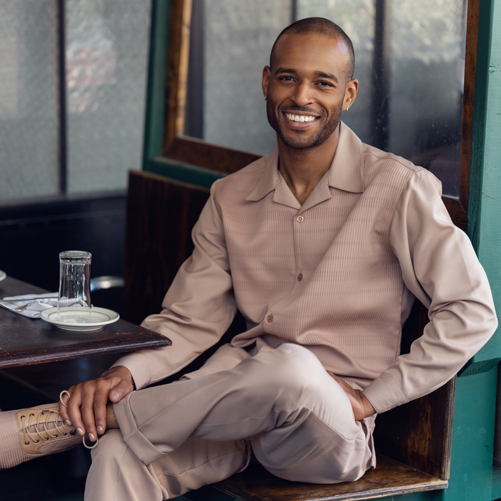 Montique Slate Tan Tone On Tone 2 Piece Long Sleeve Walking Suit Set 2290