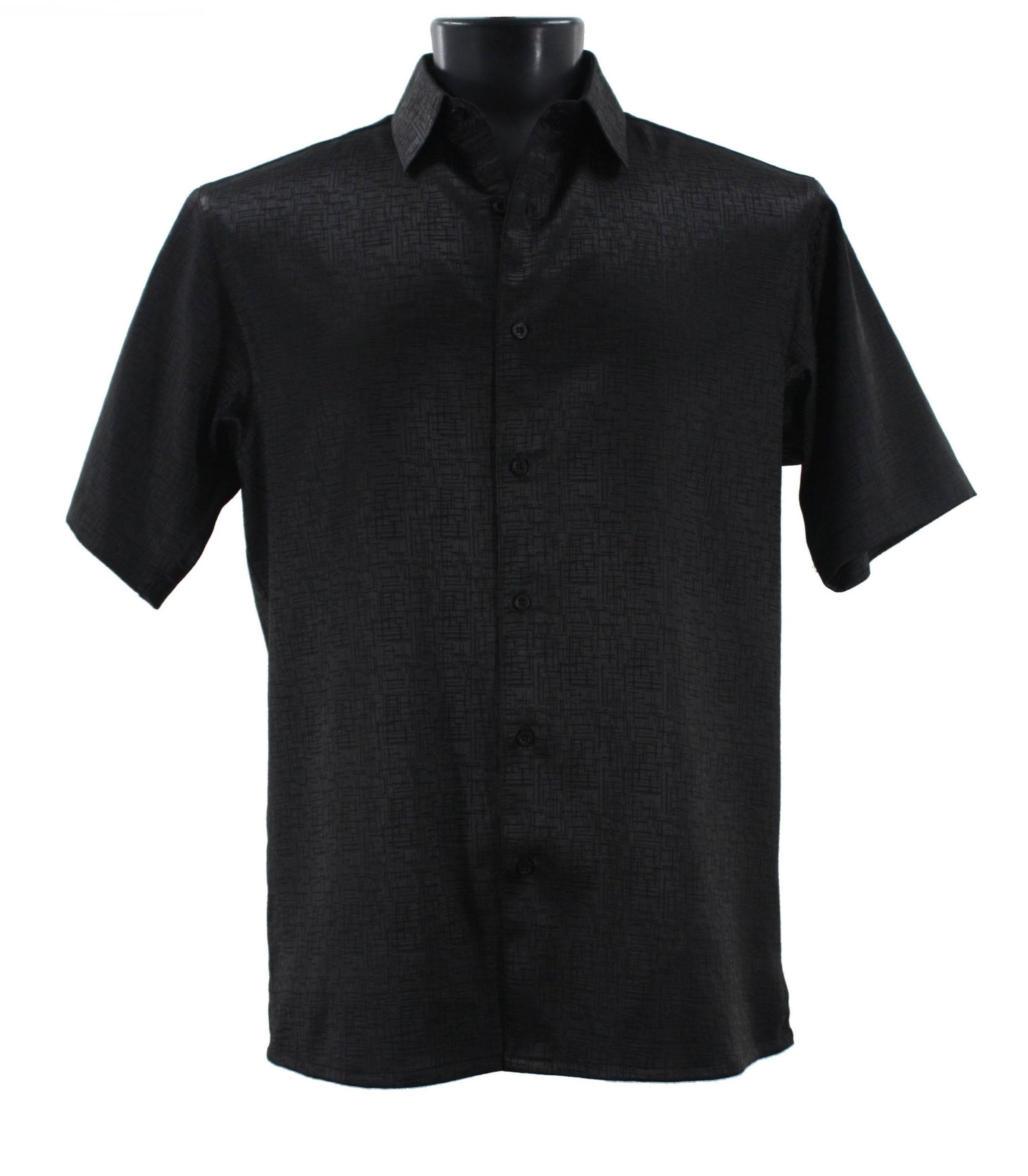 Sleek Hue Collection Tone on Tone Black Geometric Short Sleeve Shirt - Full Cut
