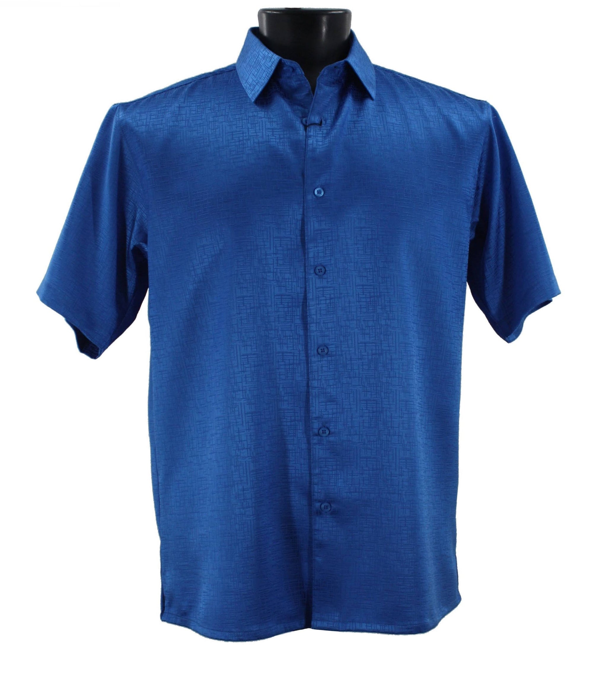 Sleek Hue Collection Tone on Tone Blue Geometric Short Sleeve Shirt - Full Cut