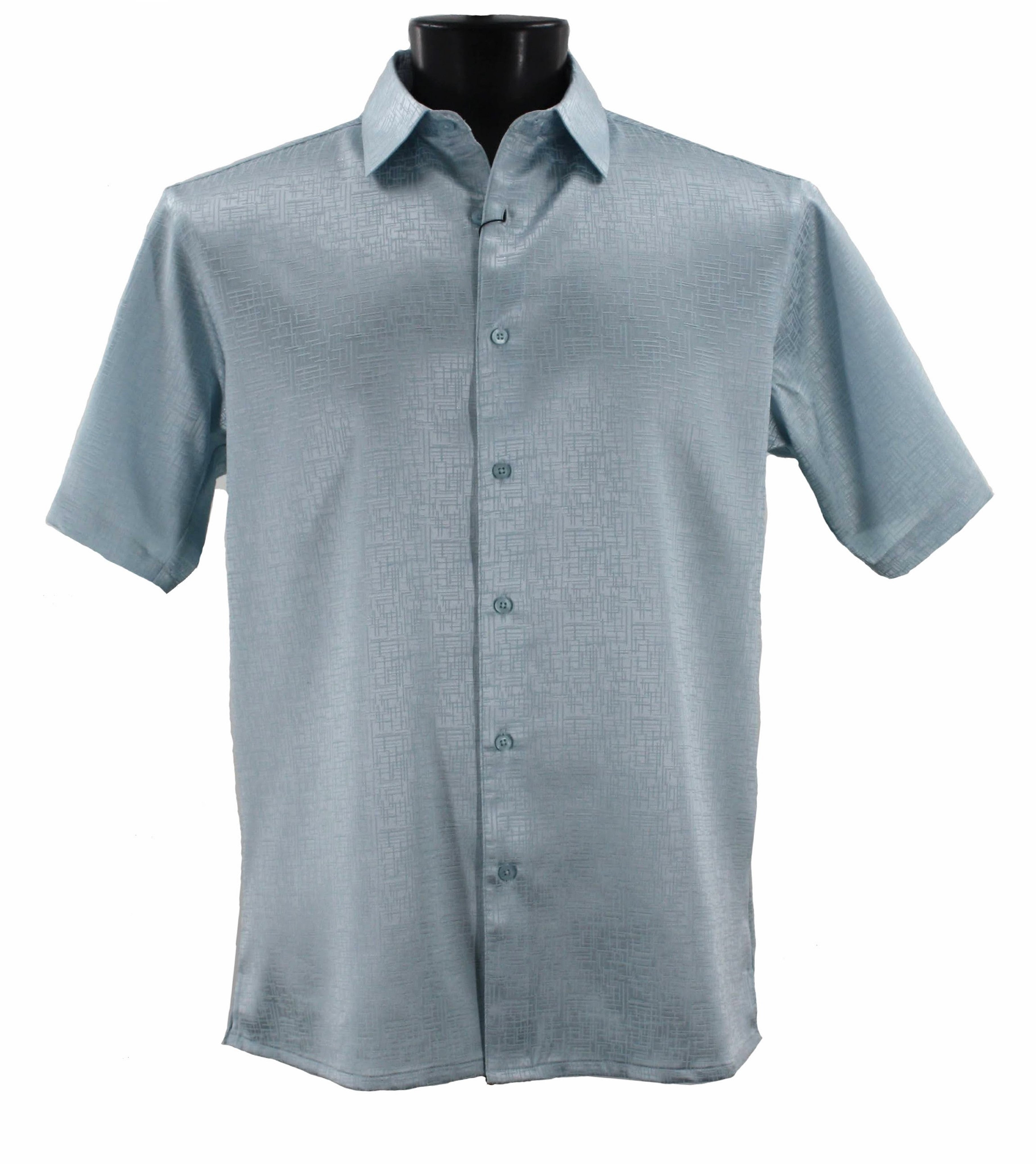 Sleek Hue Collection Tone on Tone Metallic Blue Geometric Short Sleeve Shirt - Full Cut