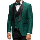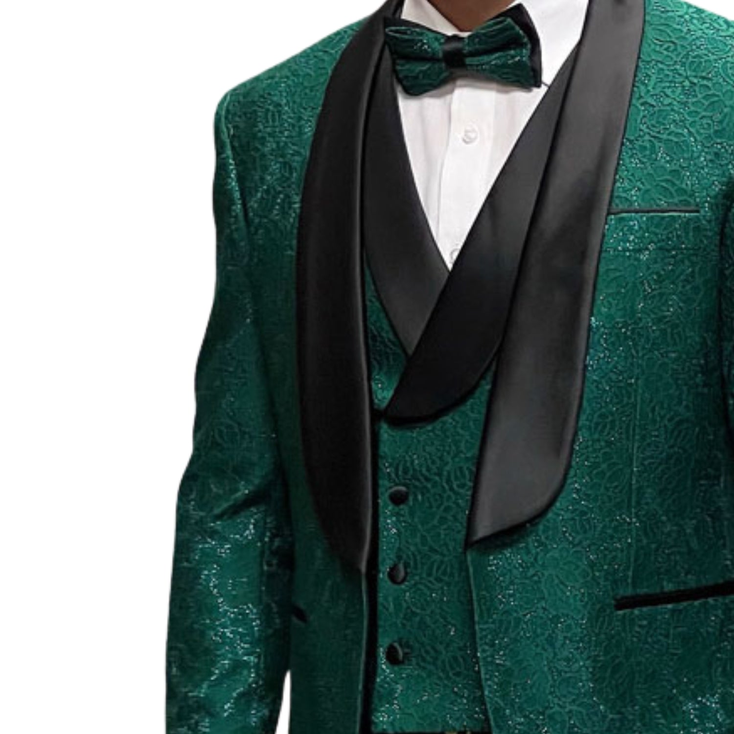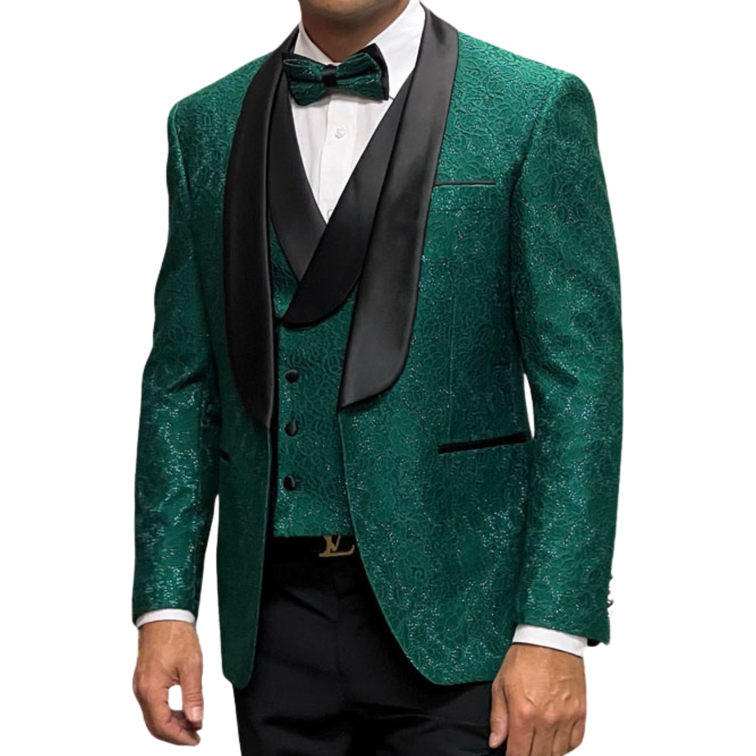 Slickora Collection: Hunter Green 3-Piece Fancy Lace Tuxedo with Double-Breasted Vest