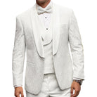 Slickora Collection: White 3-Piece Fancy Lace Tuxedo with Double-Breasted Vest