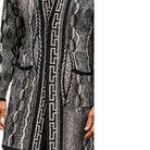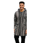 Solace Collection: Black Patterned Wool Blend 3/4 Hooded Jacket