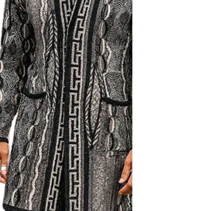 This mid-length hooded jacket is a smart cold-weather layer with a bold geometric knit design. Made from a soft wool blend, it offers warmth without bulk. The 3/4 length gives you extra coverage while the relaxed fit makes it ideal for layering over tees, sweaters, or dress shirts. Whether you're heading out for the evening or just running errands on a chilly day, this jacket delivers easy comfort with standout style.
