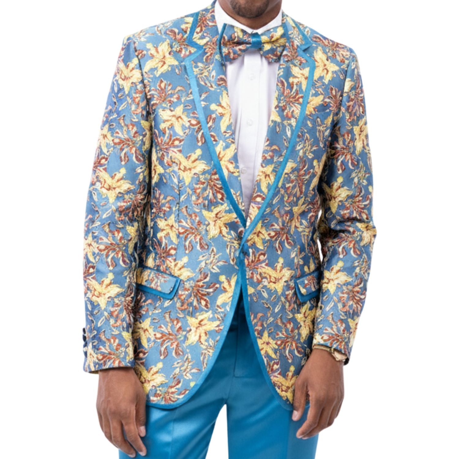 Solarius Blue 2-Piece Baroque Floral Fashion Suit with Matching Bowtie