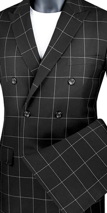 Sophistichic Collection: Black 2 Piece Windowpane Double Breasted Modern Fit Suit