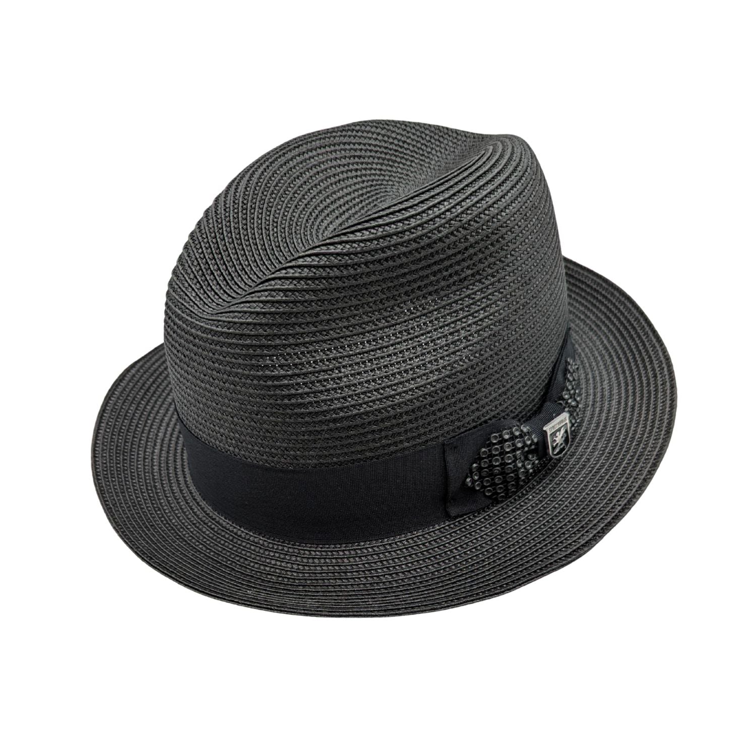 Spire Collection: Scala Black Poly Braid Fedora with Rhinestone Accent