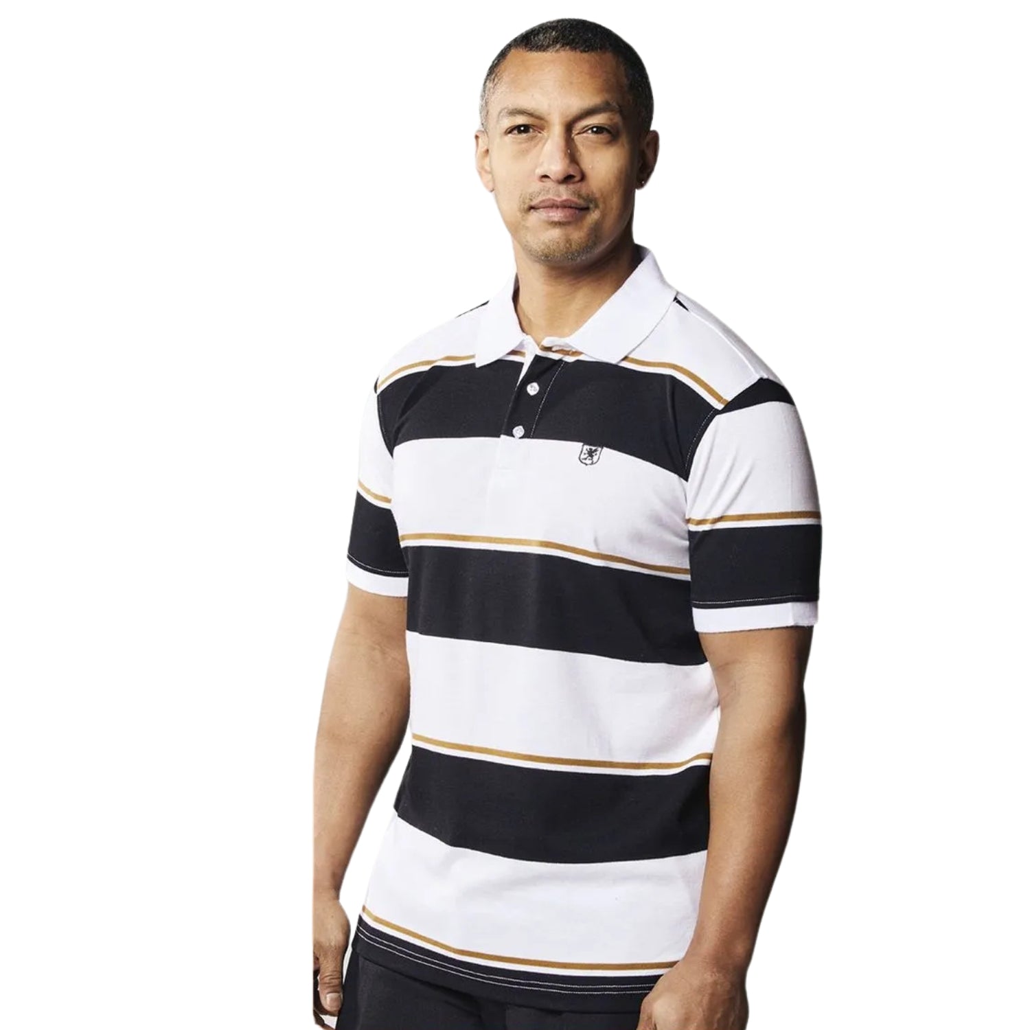 Stacy Adams Black & White Stripe Cotton Polo Shirt