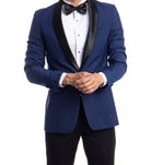 Sterling Collection: Blue Indigo Tuxedo with Black Satin Shawl Lapel – Slim Fit