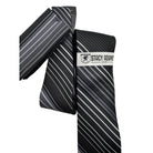 Elevate your formal wardrobe with the streamlined precision of the Stratos Collection by Stacy Adams. This set is defined by its clean, architectural aesthetic, featuring a dynamic series of varying diagonal stripes in a sleek gradient of silver, charcoal, and deep black. Designed for the modern professional, this ensemble offers a sophisticated visual rhythm that provides a sharp, polished finish to any high-stakes business meeting or formal evening event.